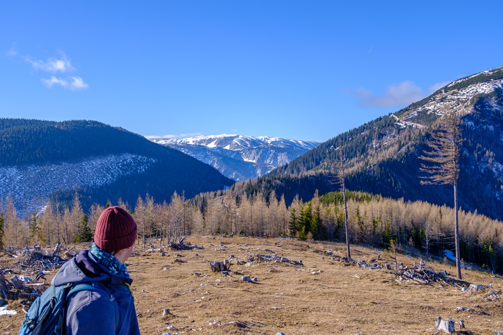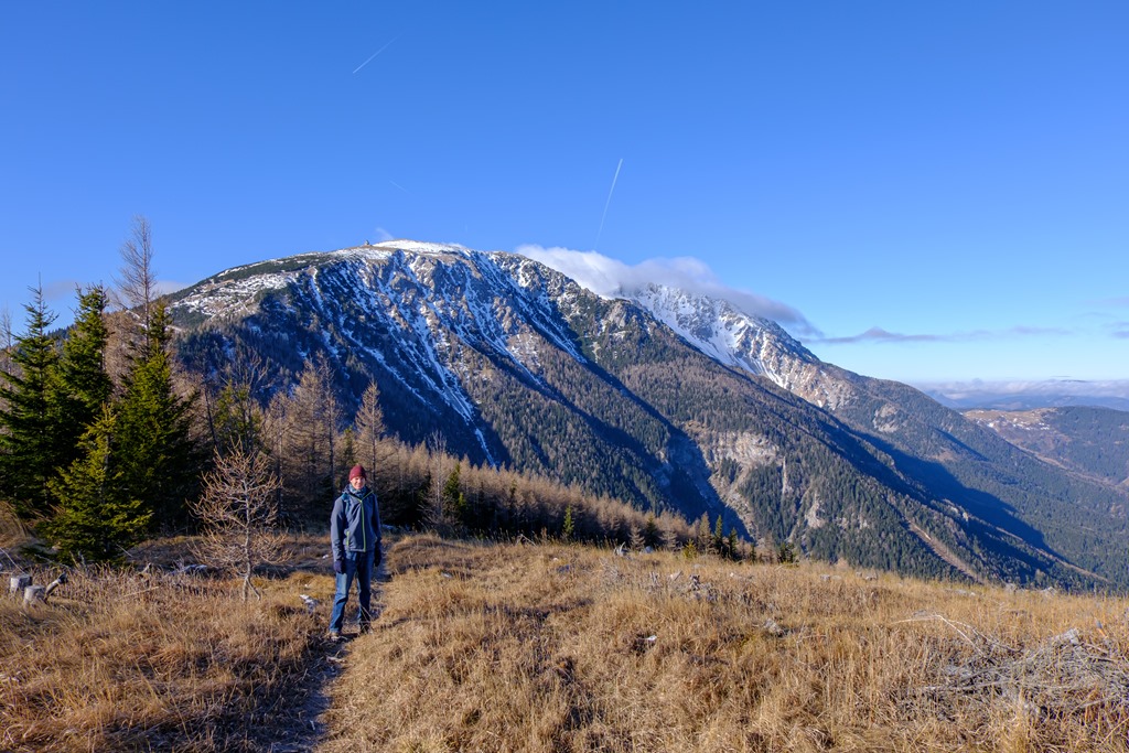 Munkatársammal Oliverrel megyünk a Schneeberg darabontjára, mivelhogy ő még nem ismeri azt a rejtett kis ösvényt, ami a Hengst délnyugati gerincén visz fel a platóra. Az időjárás-jelentés ismét meghazudtolja önmagát, mivelhogy alacsonyan húzó felhőket meg élénk szelet ígér, alig valamicske napsütéssel. De ha már egész héten terveztük a kiruccanást, és vihar meg ilyesmi borzalom nincs beharangozva, vágjunk bele.