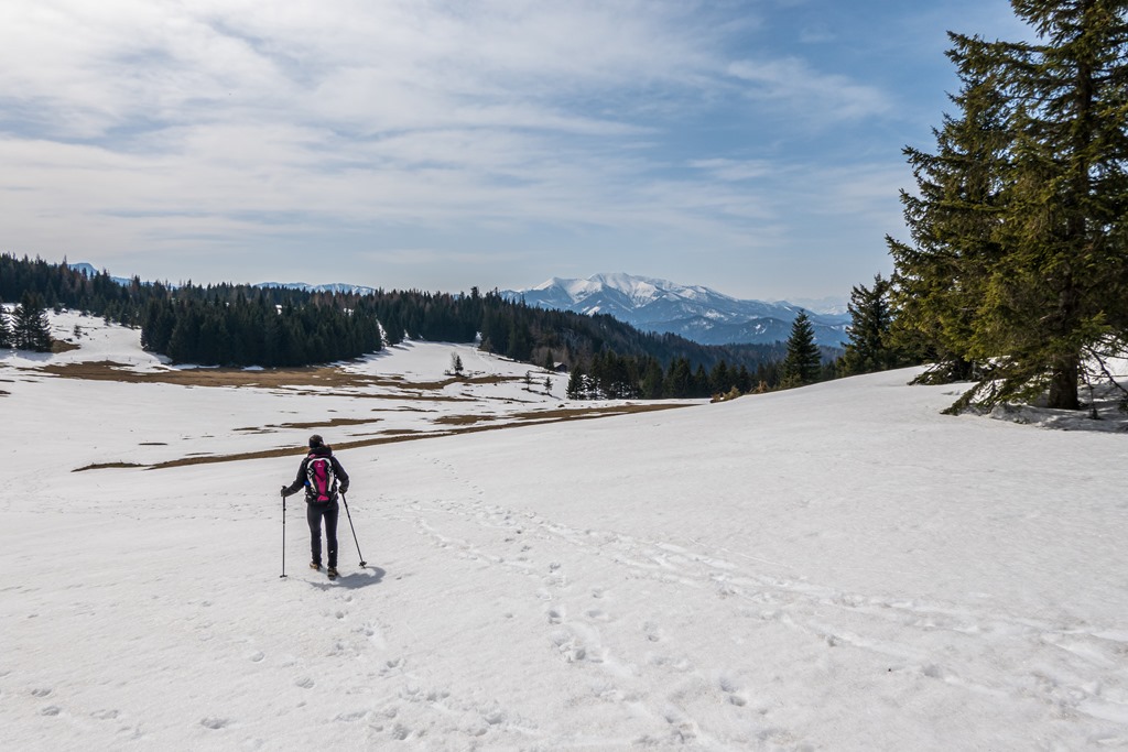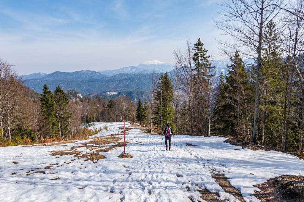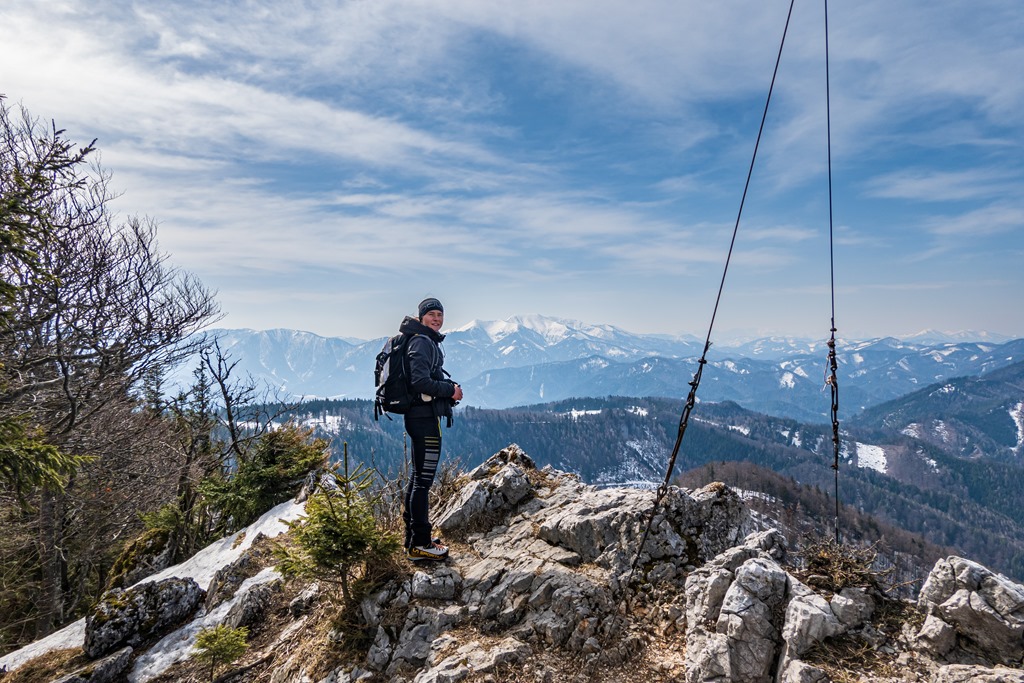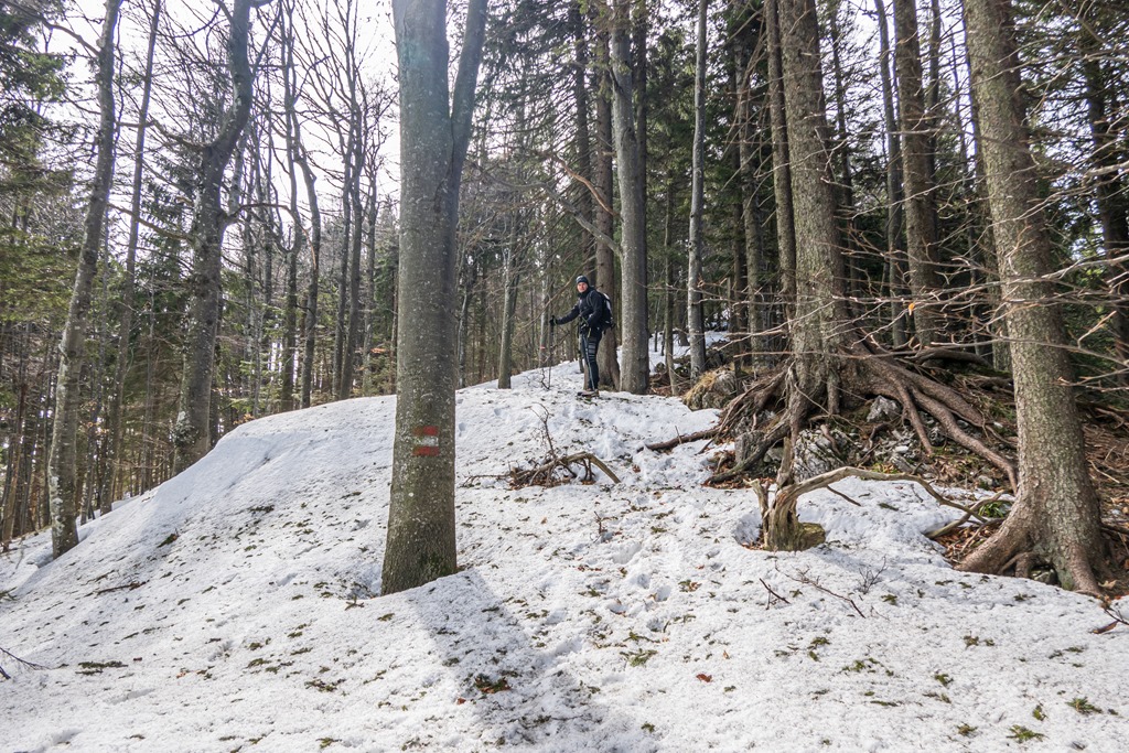 Kell nekünk még tél? Nem igazán, de ha magasabbra mászunk, akkor még ott találjuk. Fátyolfelhős, de egyébként napos és kissé szeles idő ígérkezik. Maradjunk csak lejjebb, nehogy megint harcba keveredjünk a túlerőben lévő fuvallatokkal. A Türnizi-Alpok vidékén már régen jártam, a cirka 1200 méter fölé alig-alig kiemelkedő csúcsaival éppen megfelelőnek látszik.