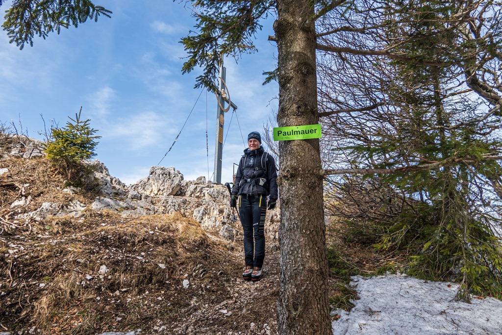 A Linsbergről lefelé jövet van egy kellemetlen, fagyos, jeges hóval borított harántolós rész, ami jó odafigyelést kíván. A szakasz nem hosszú, egy a gerincen utunkat álló, nehezen megmászható sziklaszirtet kerül. Érkezünk a Grabenalm szintjére, egy nyeregbe és még egy utolsó nekiveselkedéssel bevesszük aznapi fő célunkat, a Paulmauer kilátásban, panorámában páratlanul szép csúcsát (lenti képek). A hegy nyugati oldalán, alattunk irdatlan mélység, vagy százméretes függőleges fal, innen a név: Pál-falak.