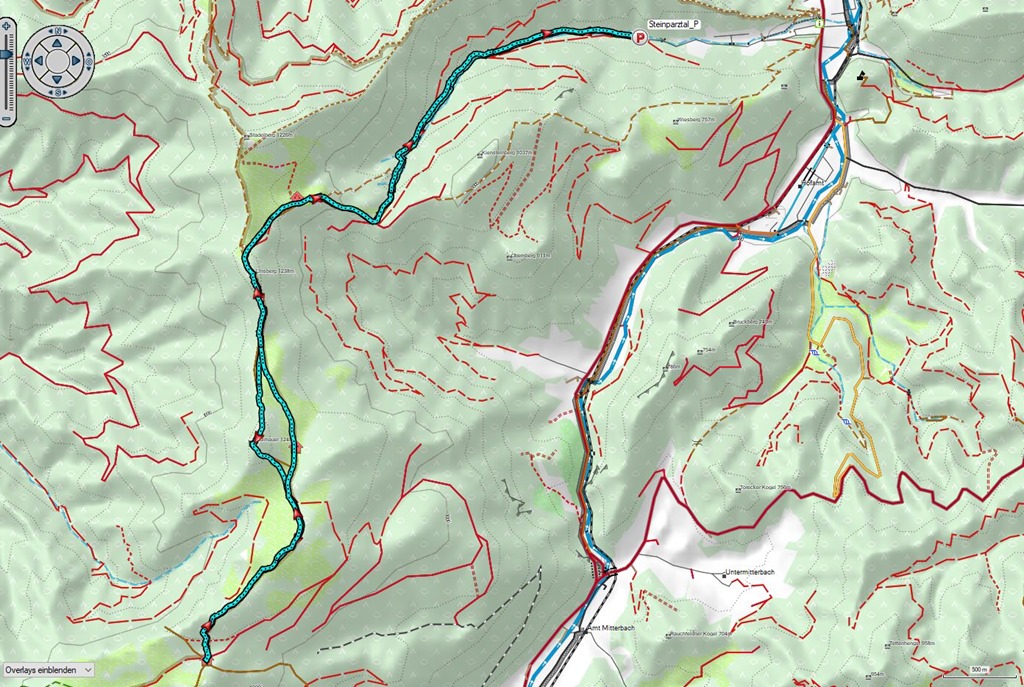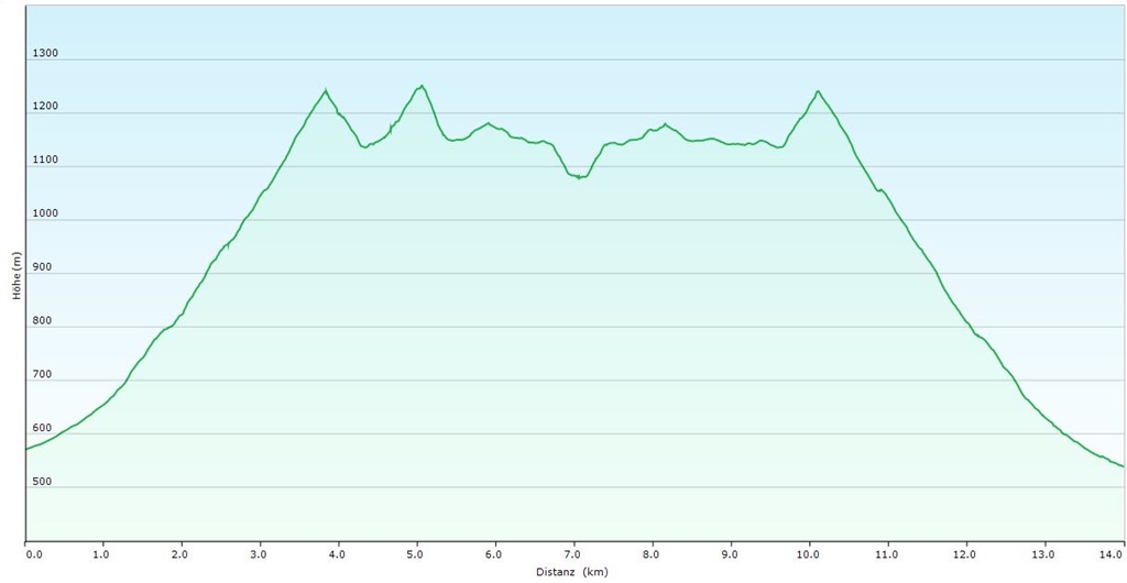 A Hohenberg területén lévő Steinparztalból indulunk, ami egy mély árok. Ott relatíve védettek vagyunk a szélrohamokkal szemben. Lenne pedig tudniillik még két más út is (Stadelbergkamm, illetve Kiensteinberg-Wiesberg), az árkot jobbról és balról határoló hegygerinceken.