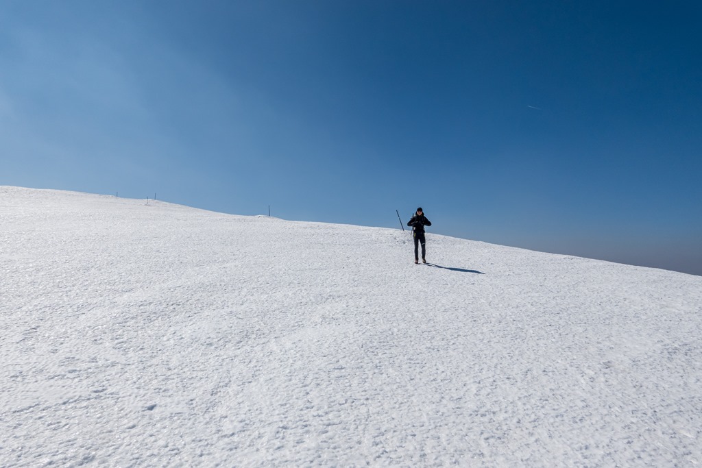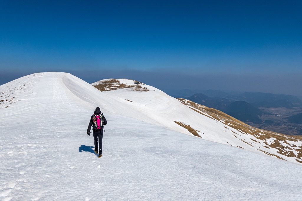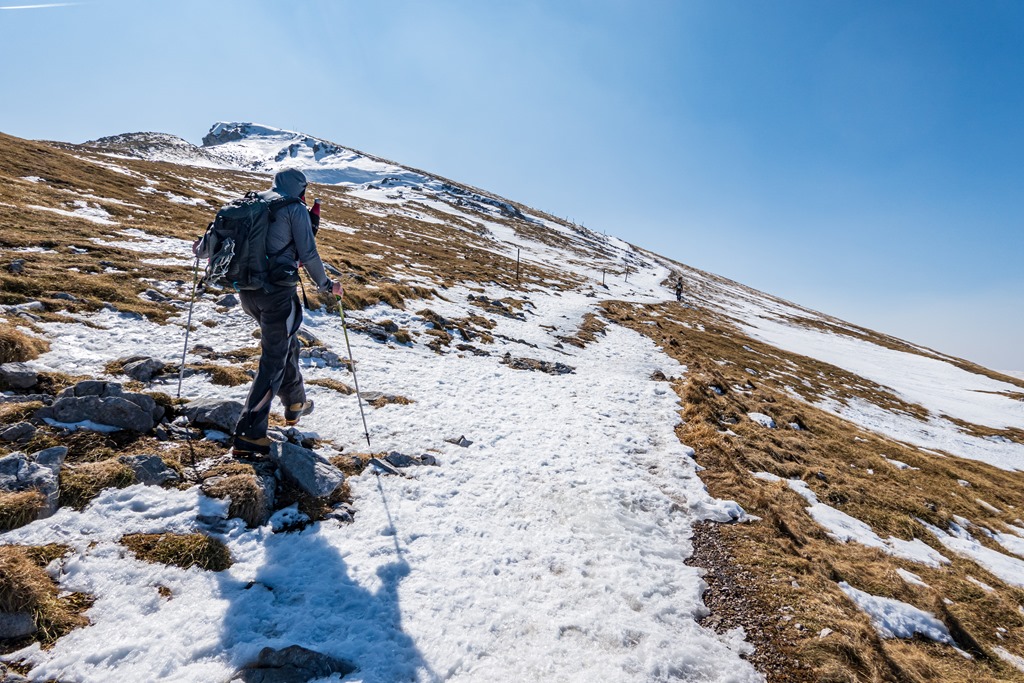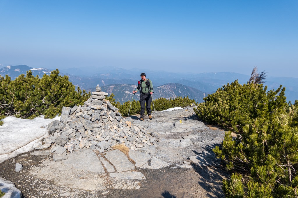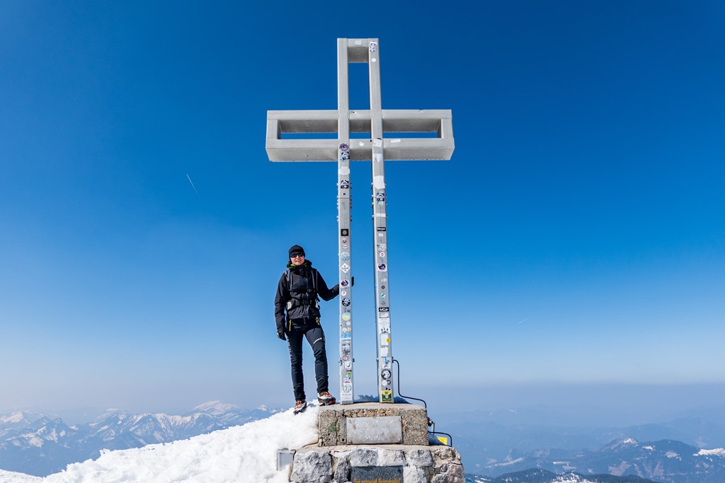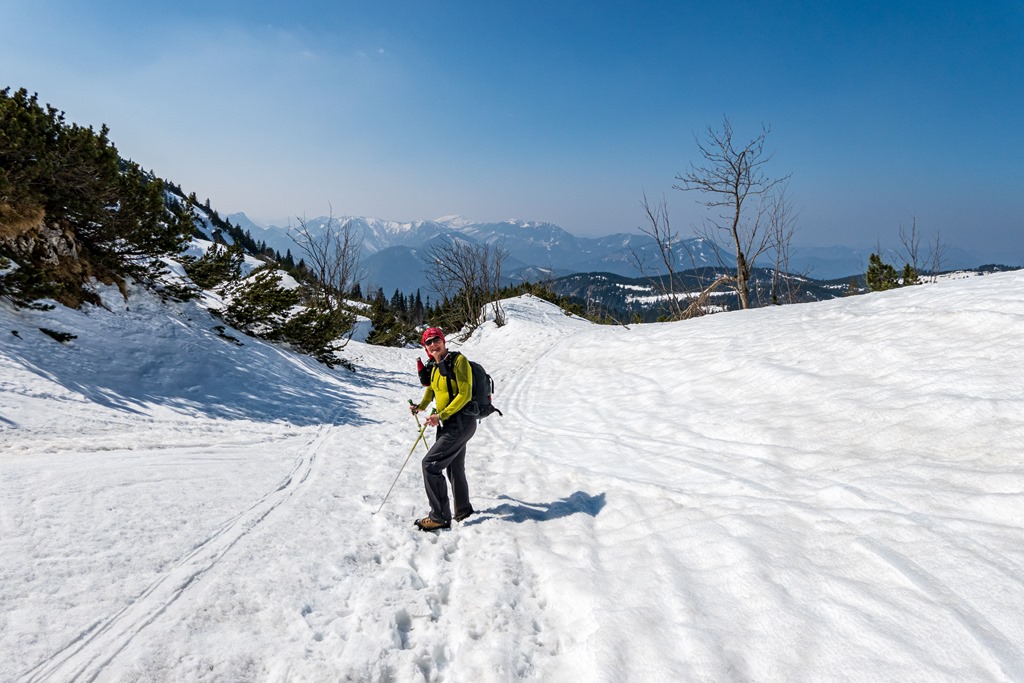 Márciusban szoktunk könnyes búcsút inteni a télnek, mégpedig egy kiadós magashegyi túrával Alsó-Ausztia legmagasabb csúcsára, a Klosterwappenra. A klasszikus mozzanat az egészben, pedig az út vonalvezetése a Fadensteig-Fadenwegen. Odalenn már tavaszt csicseregnek a madárkák, de a hegy még erősen fehérlik, így téli cuccokkal felszerelkezve vágunk neki a jó kondit megkövetelő kalandnak (8:20). Mivel az elmúlt hetihez hasonló, leülepedett, megkeményedett hórétegre számítunk, hótalpakat nem viszünk, pedig mint később kiderül, jó hasznukat vehettük volna.