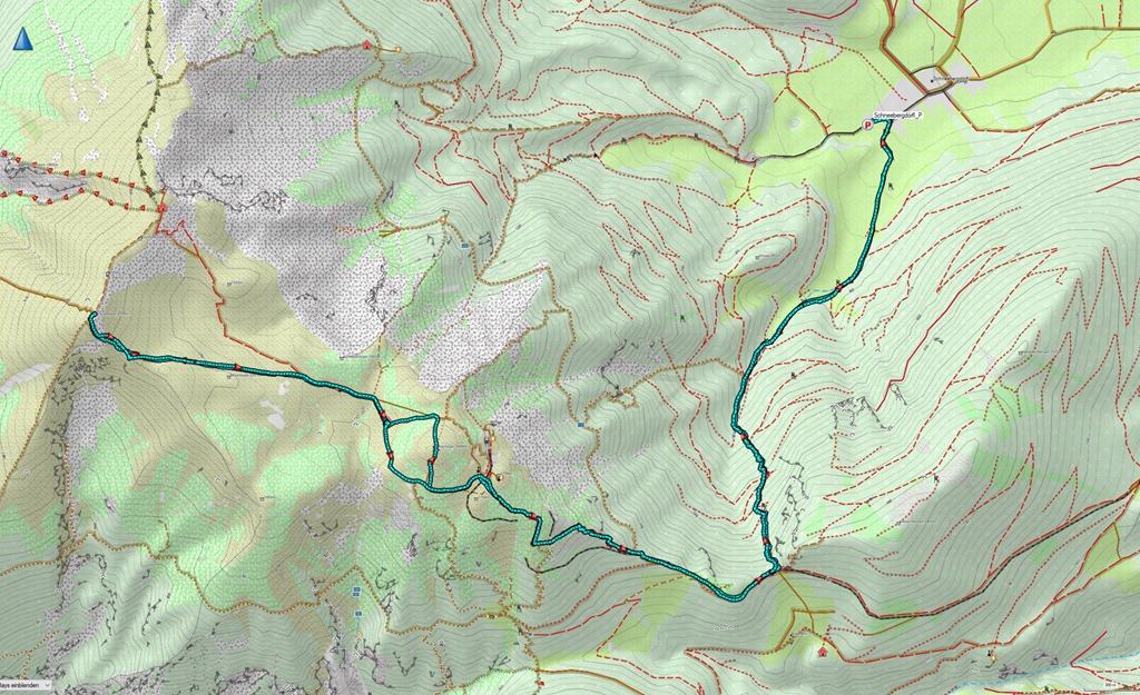 Miután elköltöttük a magunkkal hozottakat (csak holnaptól van nyitva a Hütte), nem marad más hátra, mint ugyanazon az útvonalon, ahogy érkeztünk, leballagni. Közben ugyancsak sanyarog a lábam, egy éve valami gonosz szellem költözhetett belé, mert nem hagy békén. Minden lépés egy fájdalom. Öregszem. Hamarosan a kisebb lélegzetvételű túrákkal is be kell majd érjem.
