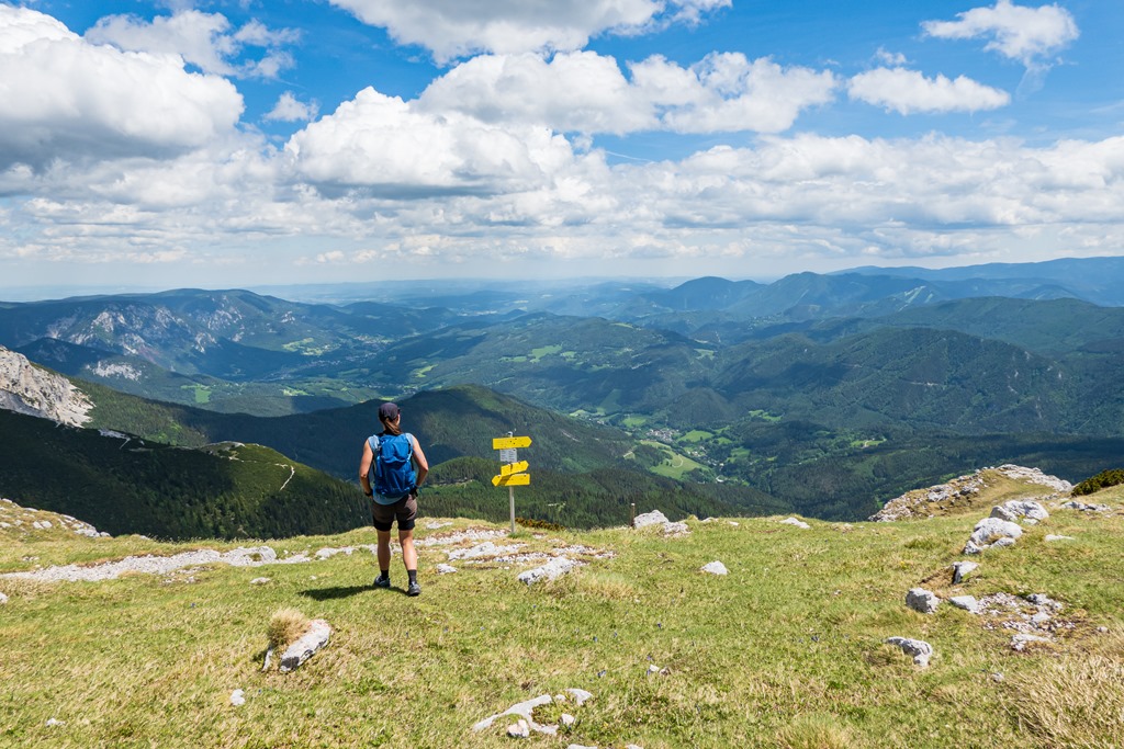 A Preiner Gscheidböl induló túrák megfelelnek a szempontjainknak. Lehet rövidre, de magasra fogni. A Karl Kantner Steiget már ismerjük, de a Raxenmäersteighez még Cirminek nem volt szerencséje. Nos akkor az egyiken másszunk fel, a másikon meg le.