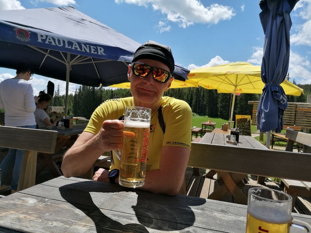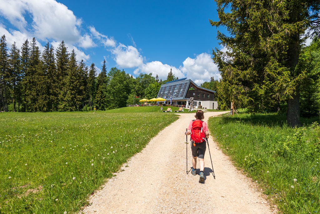 Háromnegyed tizenkettő lehet, mire megérkezünk. Le is huppanunk a szép, napos teraszon és átadjuk magunkat kulináris örömeinknek. Jó egy órás ebédszünet után indulunk vissza. Az utolsó legmeredekebb szakaszt egy kisebbfajta áthidaló kerülővel kiiktatjuk.