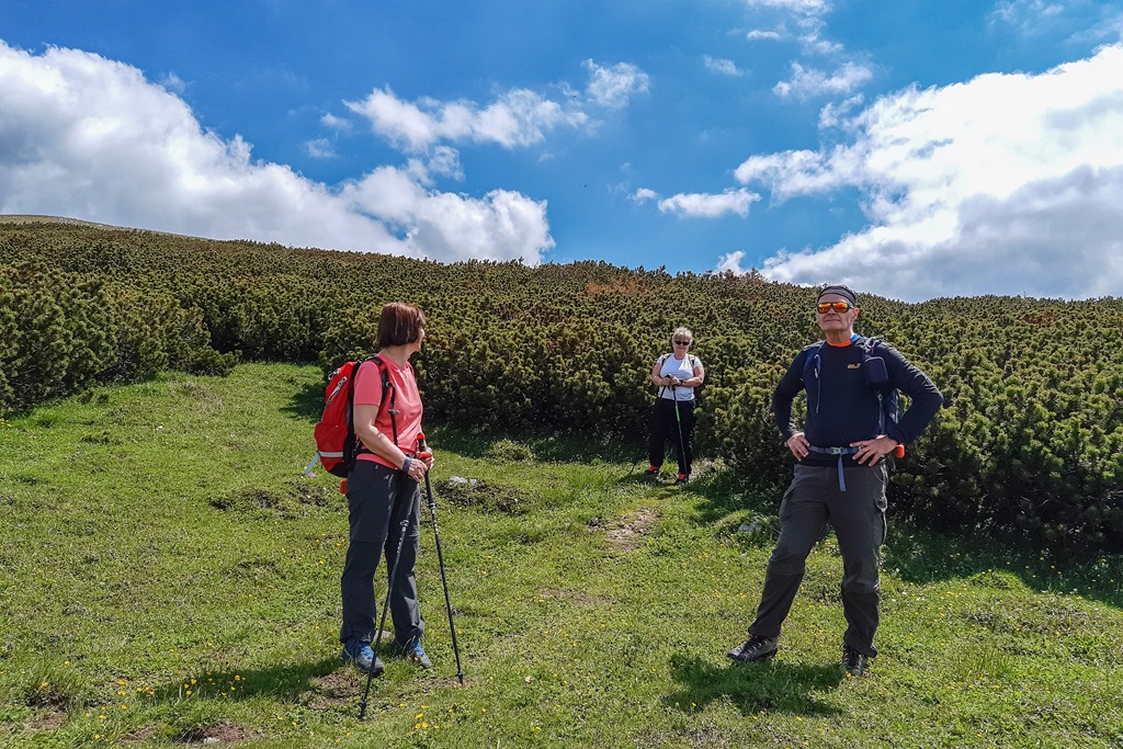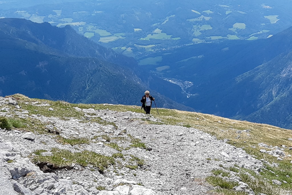 A később villában elágazó kereszteződés bal ágán, egyenesen a Klosterwappent célozzuk meg. A meggondolás része, hogy felfelé menetben, általában is jobb a meredekebb szakaszt választani. Lefelé kedvezőbbnek tűnik majd a Fischerhütte alatti részen leballagni. Nos, ez így is valósul meg.