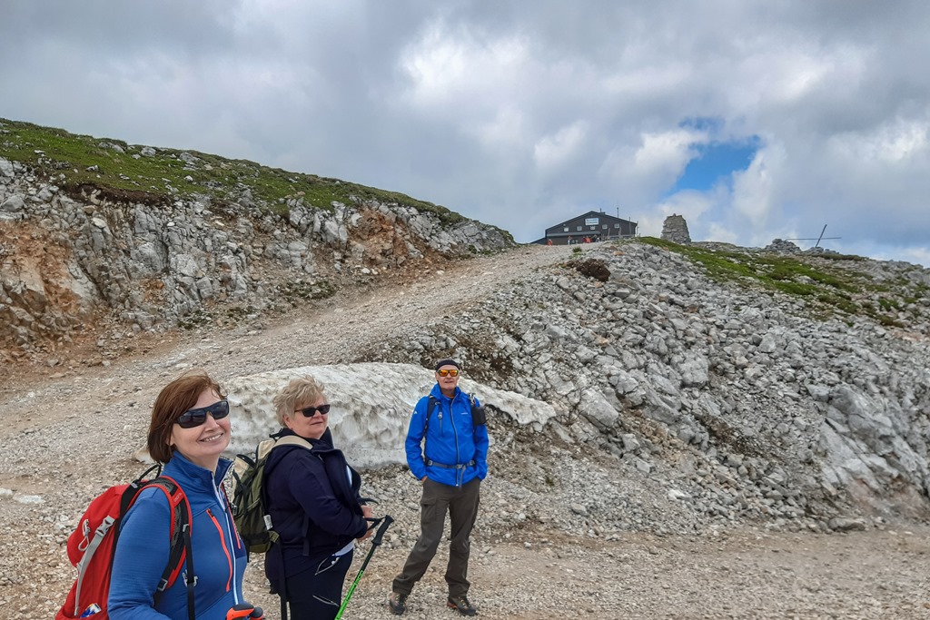 A kötelező csúcsfotó után jöhet a soron következő betérő a Fischerhüttebe. Évek hosszú során, mint megfigyeltem, magyar segédlettel üzemelt a kunyhó, de mára már nem. Szóval ezt az ételek minőségen is meg lehet érezni. A szokásos menüm, névleg ugyanaz mint korábban, de azelőtt, amíg magyar volt a szakács, jobb volt. Ezt el kell így könyvelni. De majd elválik még.