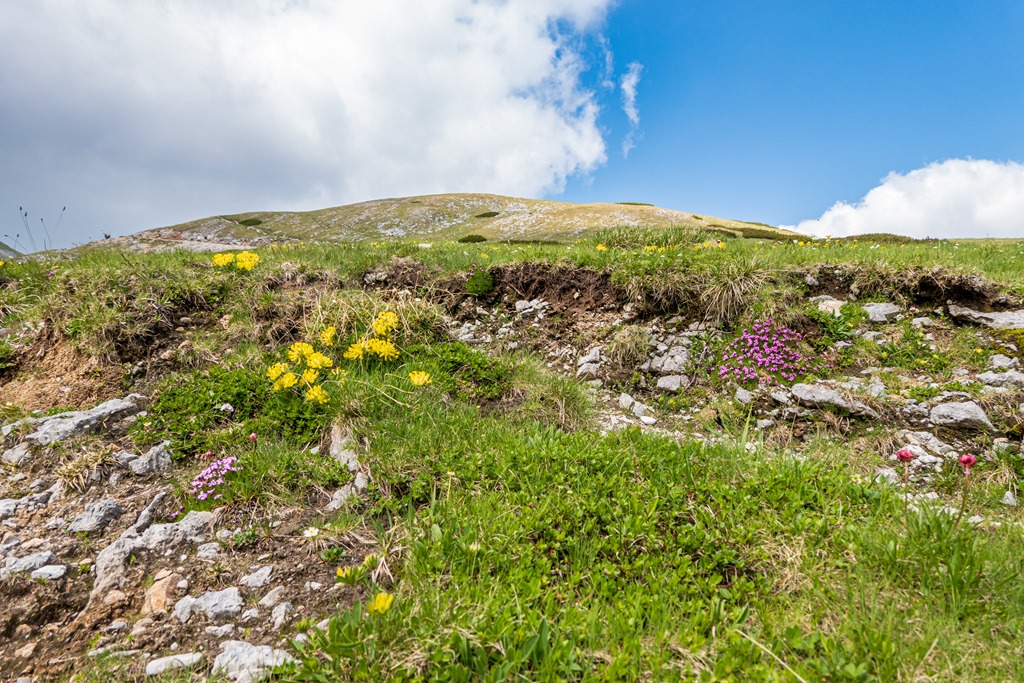 Kis intermezzo, hogy a csúcsra félvezető végső, mintegy 150 m szintemelkedés elég durva azoknak, akik ilyen akadállyal ritkán találkoznak. Így aztán mi Attilával letelepszünk a kaptató lábánál elfogyasztani egy-két kortynyi elektrolitot, míg a lányok a maguk tempójukban megküzdenek a tereppel. Ez így fair.