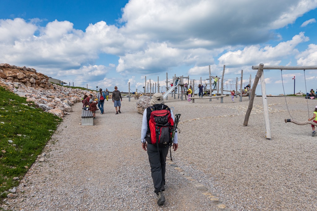Ami az aznapi időjárás előrejelzést illeti, a valóság kissé felülírja a túlzóan optimista elméleti kilátásokat. Panaszra persze okunk nincs, csupán csak a beharangozott 13 óra napsütésből a fellegek lekanyarítják, a maguk felét-harmadát. Amikor felragyog a nap, akkor azonnal le kell vetni a felső ruha-rétegeket, mert tikkaszt az ereje. Amikor meg függönye mögé rejti arcát, a hegy élénk lehelete dermeszt.