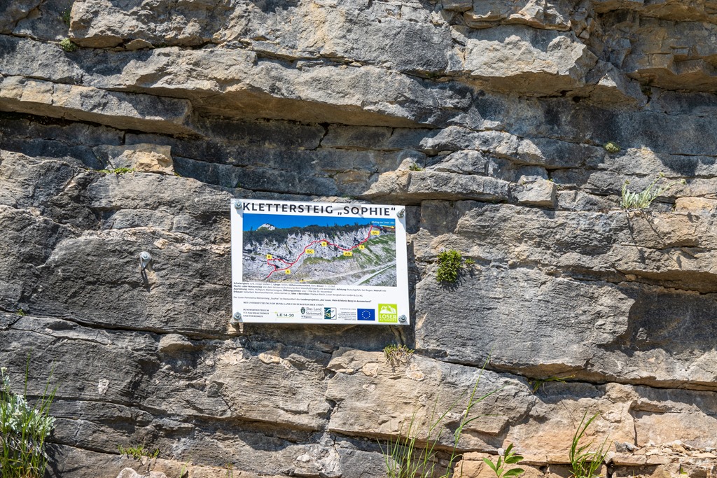 A Loserhütte felett, úgy 1650 méteren van egy másik kunyhó is, a Loseralm (fenti képen). Menjünk tehát oda fel. Útközben, a sziklafalon felfedezünk egy kezdőknek és gyerekeknek való Klettersteiget, amiről idáig nem tudtam (lásd Sophie).