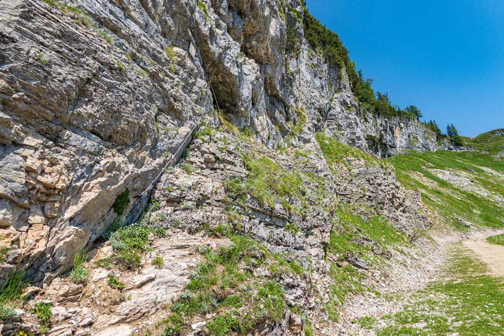 A dolog trükkje, hogy a hivatalosan jelölt turistaúton egyszer már ugyan lejöttem, (tudniillik amikor 2012-ben megmásztam a Sisi ferratát), de a viszonyaira már nem nagyon emlékszem. Az út bár jó meredeken kezdi, de még jól járható. Később engem is meglepnek azok a fajta szakaszok, ahol úgymond, kezet emelni a sziklára szinte elengedhetetlen.