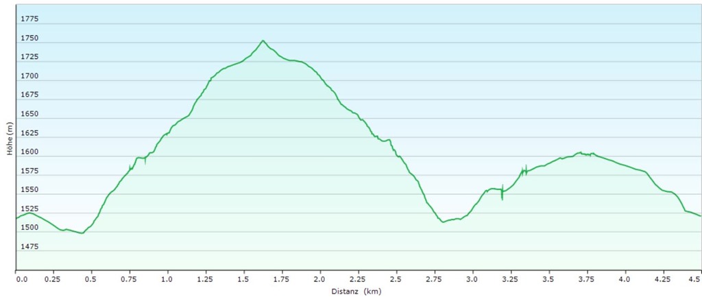 Szerencsétlenségünkre egy szembe jövő ifjú hölgytől érdeklődünk az alternatív leereszkedés viszonyai felől (a Hochanger felé). Nem ismerős itt a környéken, mondja, de a csúcsról már látható a szerinte hamarosan érkezö a zivatar. Nos, nem tudjuk ellenőrizni az információ helyességét, mert a nyugati égtájat éppen a Loser gerince blokkolja. Közben szél is támad, besötétedik és mintha már csepegne is az eső!