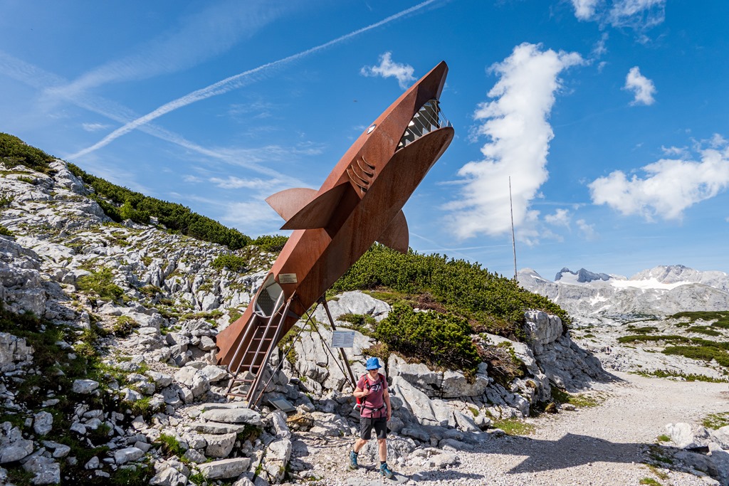 Egy bizarr cápa (Dachstein Hai), amibe bele lehet mászni. Szrintem valahogy nem illik a környezetébe, de van akinek tetszik