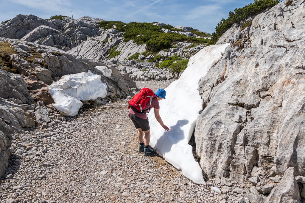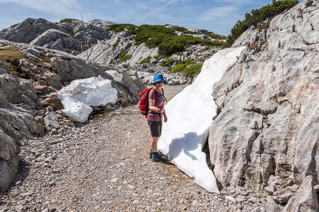Odafenn (fenti képek) még kötelezően felmegyünk a közeli csúcsra (Hoher Krippenstein) és csak ezután szállunk a már említett két részletben alá.