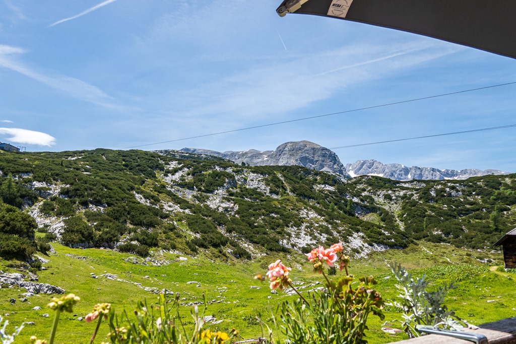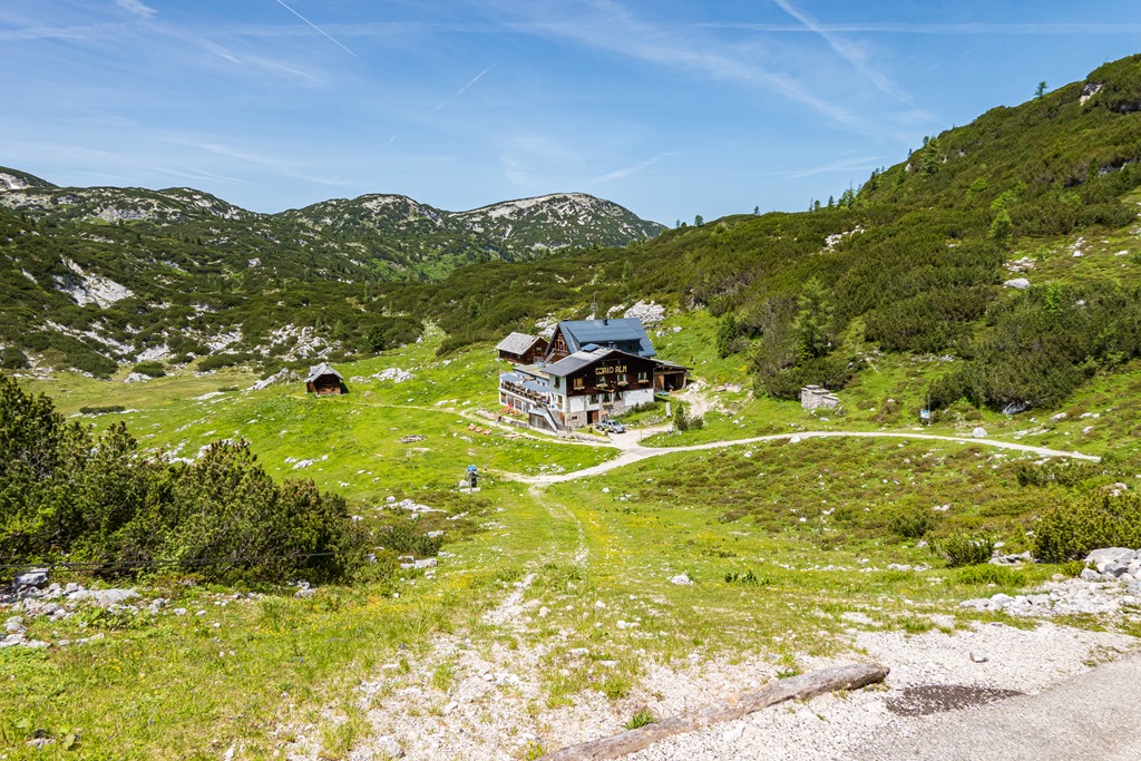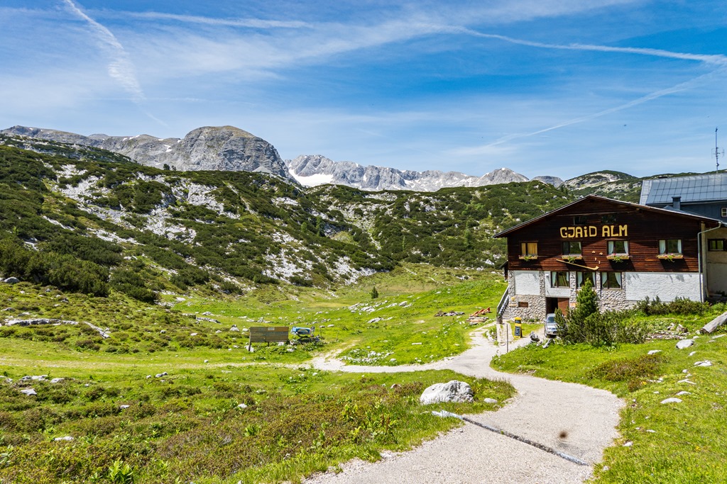 Negyed egykor érjük el Gjaid állomást (fenti képen) majd innen, valóban még cirka 10 perc a Gjaid-Alm. Már erősen szomjazunk a melegben, és természetesen, itt ellátnak minket, ilyen tekintetben, minden földi jóval.