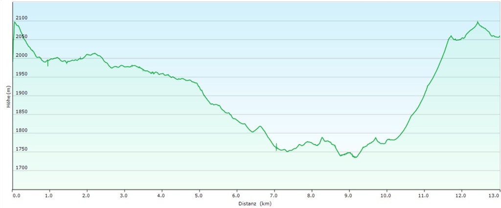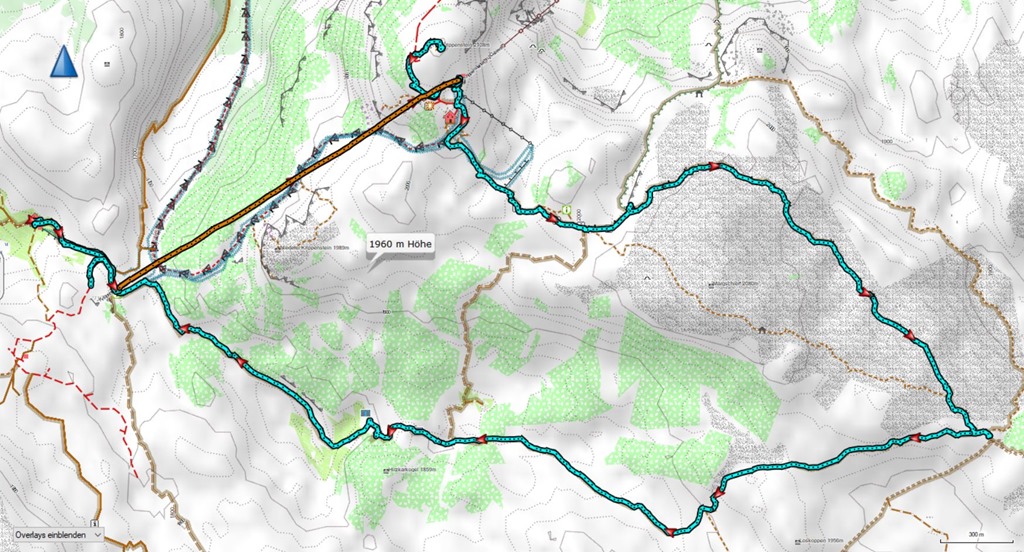 Mi is így tervezzük az utat, azzal a picurnyi különbséggel, hogy betoldjuk még a Gjaid-Alm déli meglátogatását. Az Gjaid-Alm a Gjaid állomáson túl, kb. 10 percnyi útra van, folyamatos lejtésben.