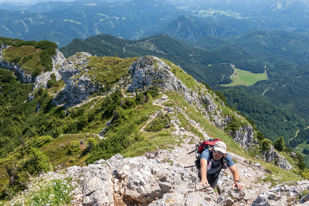 A rövidítés úgy 10 perc elteltével egyesül a hivatalosan jelzett turistaúttal. Szerpentinekben, hajtű kanyarulatok sorozatán át jutunk egyre feljebb, egyre közelebb az Ötscher gerincéhez.