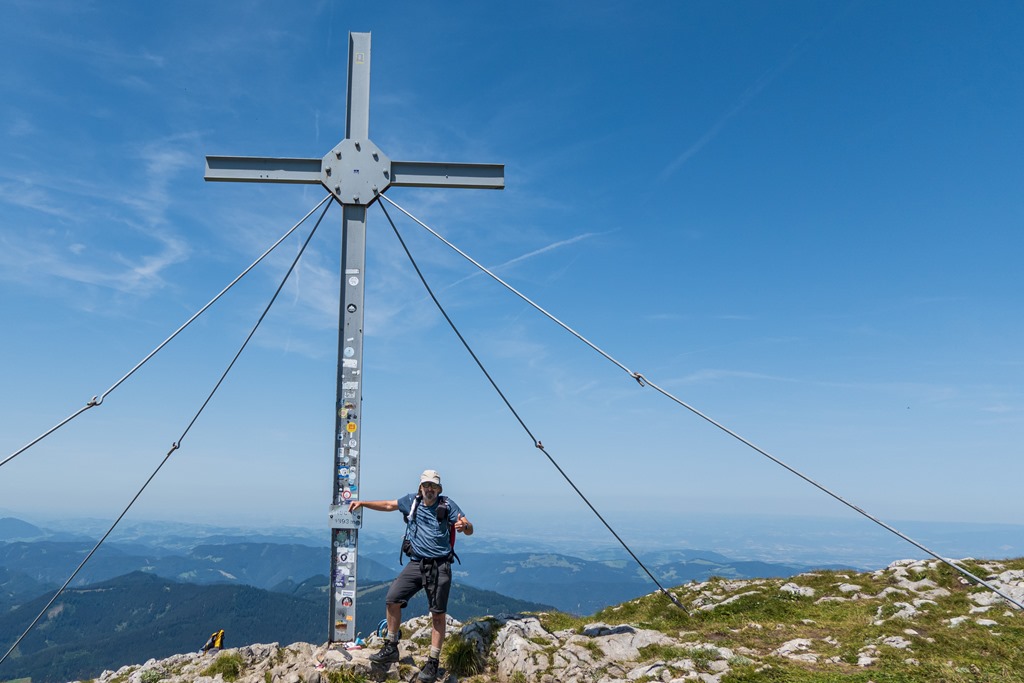Attila regényeket tud mesélni Dél-Tirolban, a Dolomitokban megejtett kalandjairól, na de itt a szomszédban az Ötscheren még nem járt. Nos, ezt a mulasztást mihamarább orvosolni kellett. Mivel a lábaim még továbbra is gyengélkednek, csak a klasszikus rövid variánst választjuk Lackenhofból kiindulva.