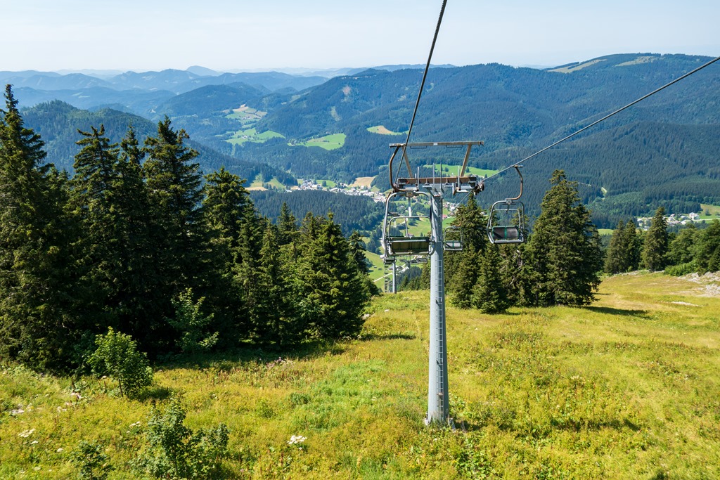 Mint az elején jeleztem, a lábam gyengélkedése miatt, elfogadjuk a helyi libegő ajánlatát és a kétüléses liften érkezünk vissza a völgybe.