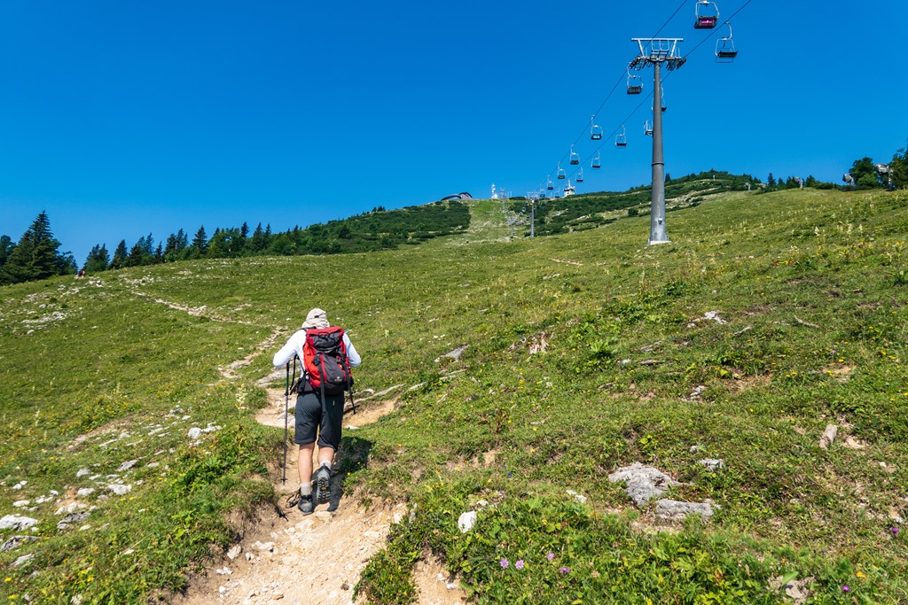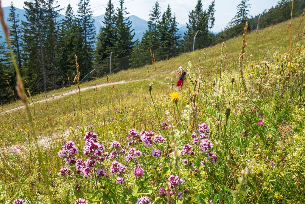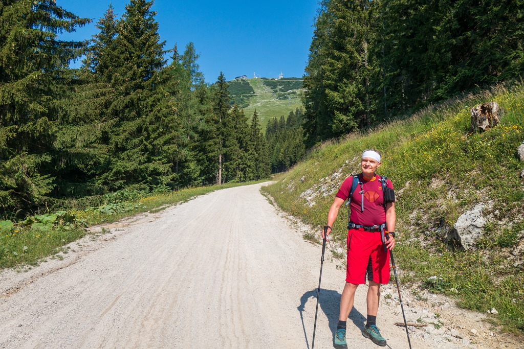 A Gemeindealpen még jómagam sem jártam, pedig kínáltatja magát, valahányszor a képbe kerül az Ötscher. Most, viszont végre eljött az alkalom szülte ideje annak is, hogy meglátogassuk. A Gemeindealperől annyit érdemes tudni, hogy egy kisebb síterep, és tehát a turizmus jobbára a havas lesiklókra épül. Nyáron odalenn, inkább az Erlaufsee vize vonzza a látogatókat. Ez érthető is, hiszen a nagy melegben felbaktatni a csúcsra, extra kitartást és szívós elszántságot igényel. Mindezzel, mi Attilával rendelkezünk, tehát semmi kétség, felmegyünk. Ennek időigénye, papírforma szerint, körülbelül két és fél óra lehet.