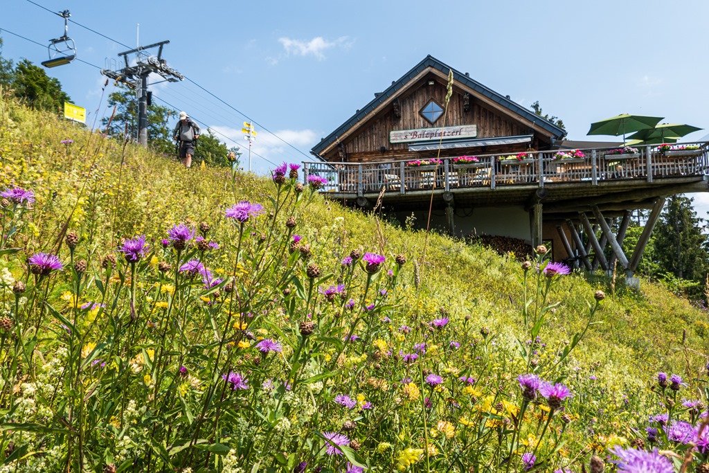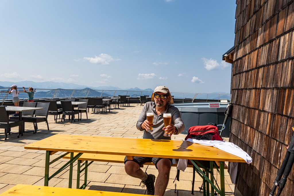 Summa-sumárum végülis 2:10 óra érjük el a hegy tetejét, így legalább 20 perccel verve a papírformát. Pedig szép nyugodt tempót diktáltunk, a sietség nem volt útitársunk. A köztiállomáshoz érve megörülök a gondolatnak, hogy a csúcsról legalább idáig a libegővel ereszkedhetünk alá, akár az Ötscherről. Mint néhányszor már megemlítettem, ez bár némi pironkodást okoz nekem, de a lábam makacs sajgásai ezt sajnos megkívánják (lenti képek).