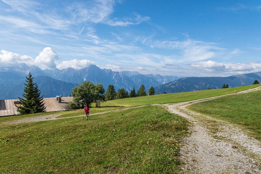 Hogy is lehetne másként! Fel-fel a magasban fekvő almokra (1812m). Ezúttal a Zettersfeldbahn kabinos felvonó repít az azonos nevű hegyi legelőre. Használhatnánk a négyüléses felvonót, hogy egyenesen a 2235 méter magas Steinermandlra vigyen, de az már teljesen cepres lenne. Mi inkább felgyalogolunk a kereszteződésbe, ahol jó egynéhány turistaút találkozik.
