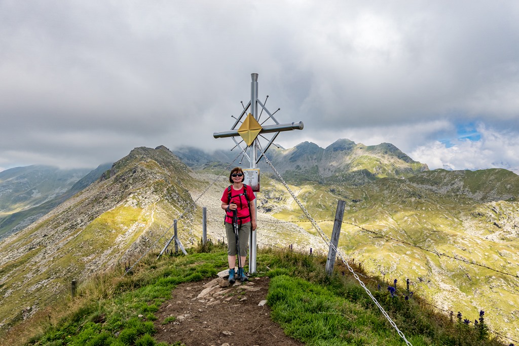 A túra megtervezéséhez tudni kell, hogy a tavak vidékére két, teljesen különböző jellegű út vezet. A déli vonal egy minden tekintetben vad, kitett sziklavilágon át visz. Innen ágazik le, mint zsákutca, a Goiselere vezető ösvény is. Tehát egyszerűen csak kínáltatja magát. Nem lehet mellette elmenni anélkül, hogy a csúcsokat kedvelő vándorember szíve nem dobogna hangosabban. Angika is bevállalja, pedig a feljutás nem éppen leányálom. És ott vagyunk fenn a csodaszép keresztnél, tajtékozva, tüzet lehelve, de megcsináltuk. Mivel gyerek még az idő, bevállaljuk a tavakat is.