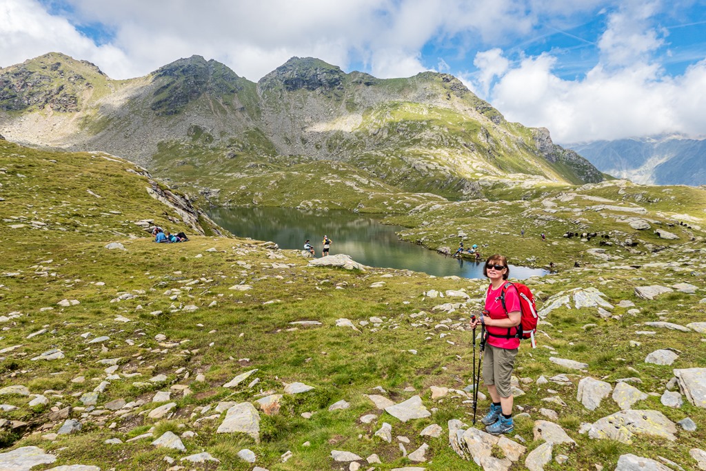 Végülis gond nélkül elérjük a két nagyobb és több apró tóból álló tavak fürtjét. Egy hatalmas, hangosan bégető juhcsorda uralja a vidéket. Elállják a turistautat, így improvizálni kell, ha tovább szeretnénk jutni. A visszafelé vezető, északi fekvésű út a másikhoz képest teljesen ártalmatlan (lenti képek). Ez nagymamáknak és kis unokáknak is alkalmas, amit ez előzőről egyáltalán nem lehet elmondani.