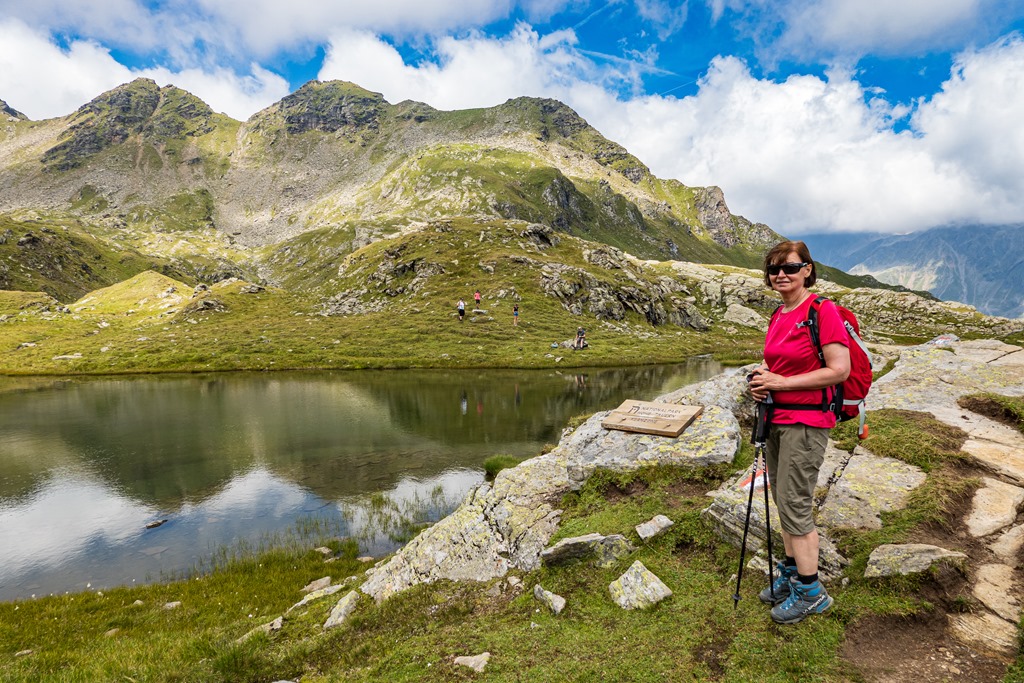 Még nem sejtjük, hogy nem Móka-Miki az út fonala. Angika megszenvedi, el is átkoz, hogy ilyen helyre hoztam, de állhatatosan végig járja. Nem árt tudni, hogy a Goisele tetejéről egy egyszerű oknál fogva, bár magas csúcs, a tengerszemeket, feltételezésem ellenére, mégsem lehet látni. Na bumm! Vajon miért? Hat csak azért nem, mert a víztükör 2438 méteren, valóban magasabban van, mint a Goisele csúcsa. Ezért aztán a kitett alpesi ösvény ahelyett, hogy várakozásunknak megfelelően lefelé lejtene, egyre csak kapaszkodik és emelkedik. Ez nem igazán mulatságos.
