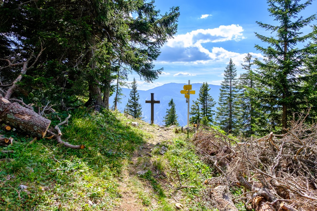 Új erőt tankolva indulok tovább. Először elérem a jól ismert Witzani-keresztet (10:00) majdnem perce pontosan másfél óra elteltével elérem a Klosterwappen csúcskeresztjét (11:26; indulástól számítva bruttó 3:35 óra alatt).