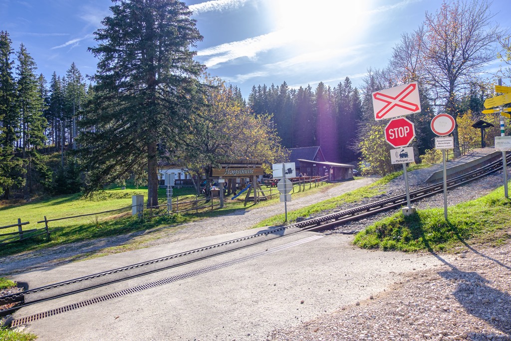 Soron következik egy meredek legelő, a Bilekalm (lenti képek). Az őszi füvel borított kaptató teteje közvetlenül a fogaskerekű sínpárjánál, az Adolf Kögler-Hütte tövében bukkan ki. Itt kezdődnek a keményebb szakaszok.