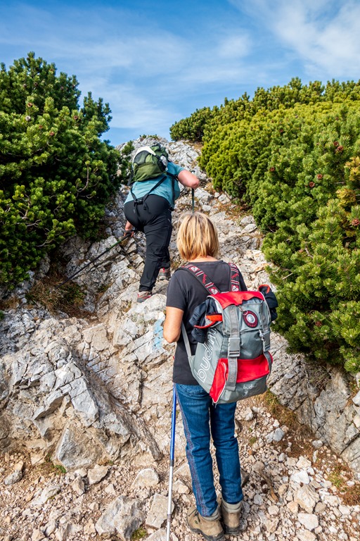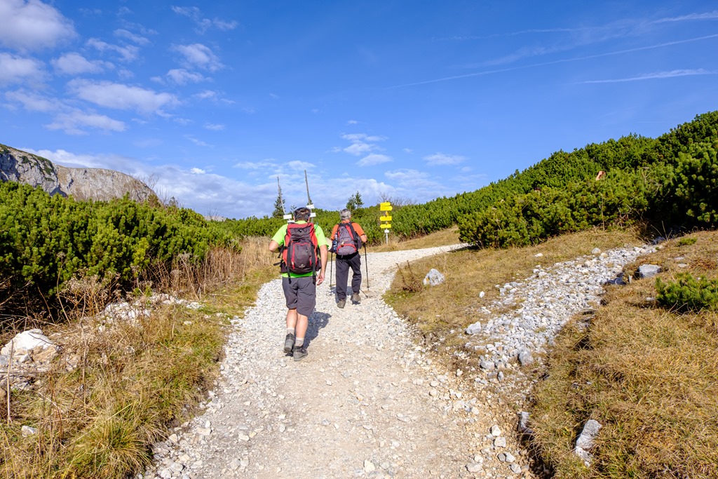 Elsőnek elérjük az Ottoházat, majd innen derekas emelkedőn fel a Jakobskogelre. Onnan visszaereszkedünk a kijelölt útra és egy, a törpefenyők közt lavírozó, örökké sáros utcácskán át, ki egy sziklás terepre.