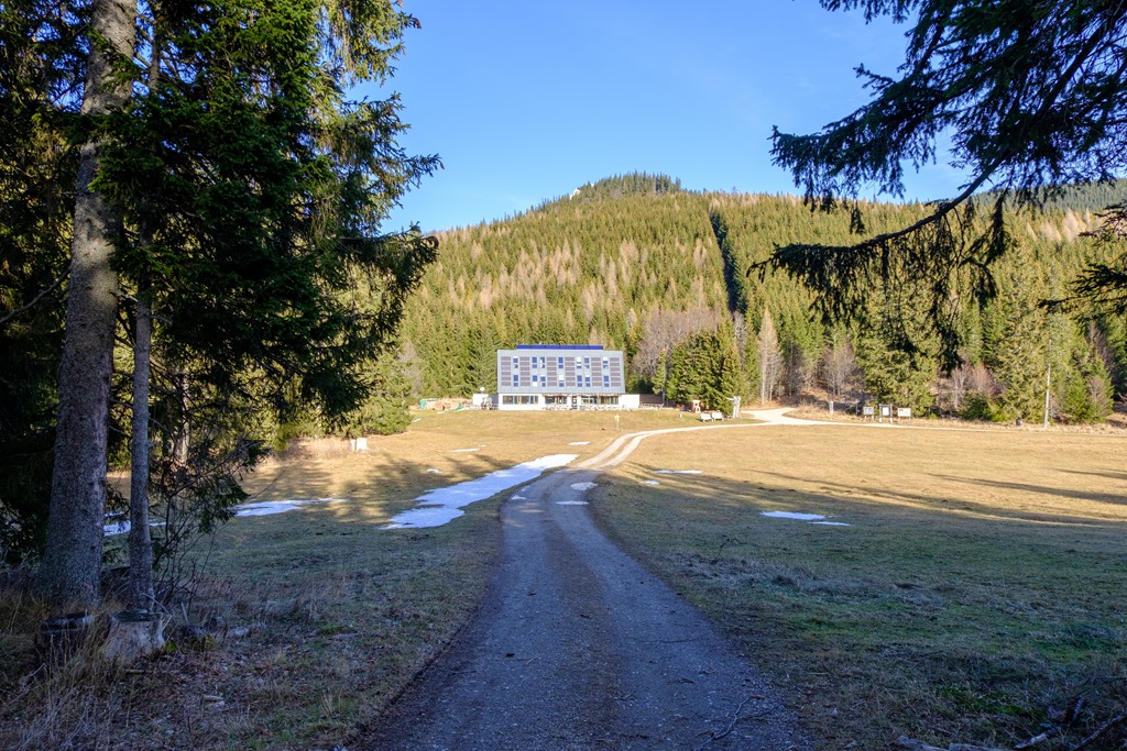 Elmúlik már 13:00 óra, mire érkezem a téli szendergésben lévő vendégházhoz (fenti és lenti képek). Mindjárt lerakom batyumat egy padra, levetem loncsra izzadt cuccaimat és hosszú percekig süttetem magam a napon. Közben elfogyasztom a magammal hozottakat