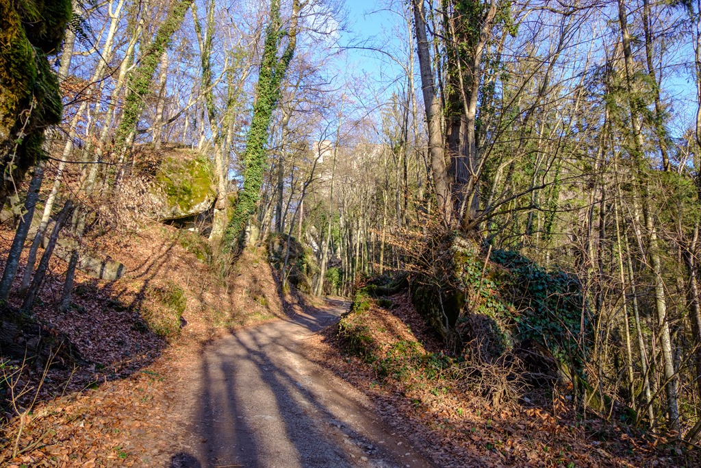 Sikerül is gond nélkül beazonosítani a jól látható ösvényt (fenti képen), mely jobbra fel ágazik el a széles erdészeti útról. Amit aztán látok, a képek is elmondják. Tudni kell erről az ösvényről, hogy lefelé menetben, két helyen, kis mászással tarkított. Aki ilyet nem szokott, esetleg zokon veheti.