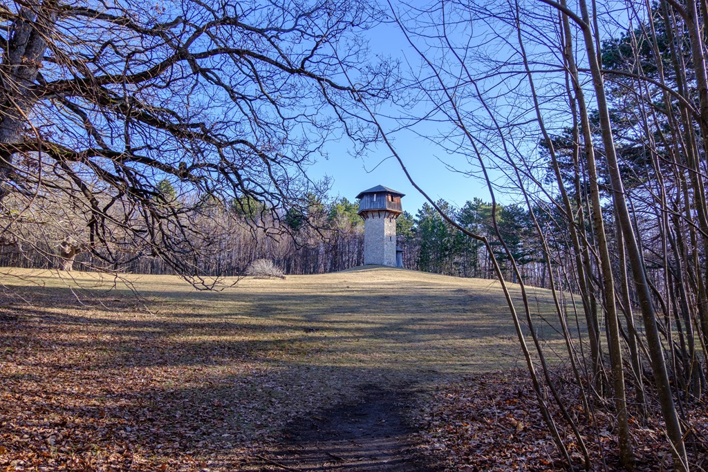 A háztűznézés után van itt még egy további újdonságom is, a Merkenstein kilátó, mely a tulajdonképpeni Merkenstein nevezetű hegy tetején, egy mezőn található. Állítólag itt valamikor nagyon régen egy állatkert volt. Ezt megerősíteni nem tudom, ilyesmire semmiféle nyom nem utal (egy túrabeszámolóban olvastam).