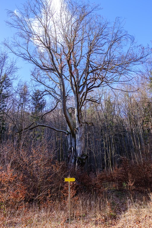 A minap, egy ilyen ritka alkalommal, Angikával kinéztünk az Eisernes Torhoz (Hoher Lindkogel). Visszafelé a déli irányú Kalkgrabenben lefelé jövet az Úr bükkje (Herrgottsbuche) mellet visz el az út. Ez egy többszáz éves hatalmas, cirka 50 méter magas fa, ami a szájhagyomány szerint, a gyakran erre sétálgató Beethovent is inspirálta már. Nos, így nézett ki a fa még januárban, amikor erre jártam (lenti kép).