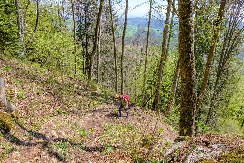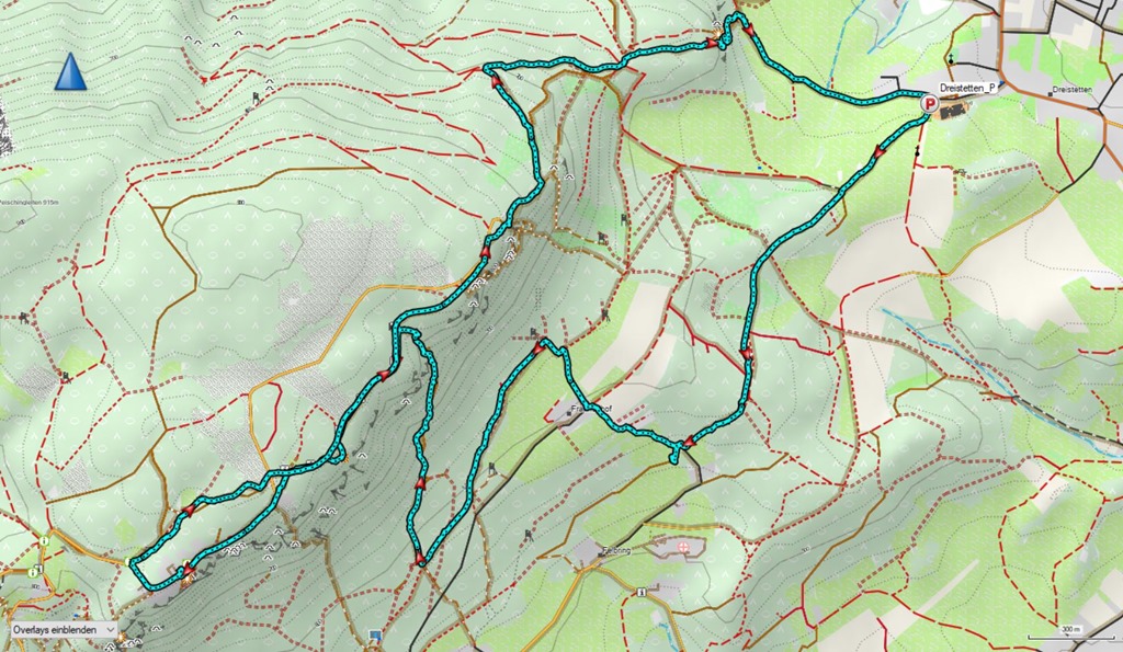 Dreistettenből indulunk, tudniillik onnan, ahol a Währingersteiget kiszemelők is. Délnyugati irányban a Starhenbergwegen bandukolunk egy vegyeserdő mélyén. Felbring/Felberwiese tanyánál viszont elvész a térképen rendesen berajzolt és jelzett turistaút vonala, így improvizálunk kicsit. Egy magát kínáltató erdészeti úton folytatjuk északi irányban a Hohe Wand falai felé. Érkezünk Frankenhofba, majd itt tovább a falak felé, aztán balra fordulva a Brünnlriesig.