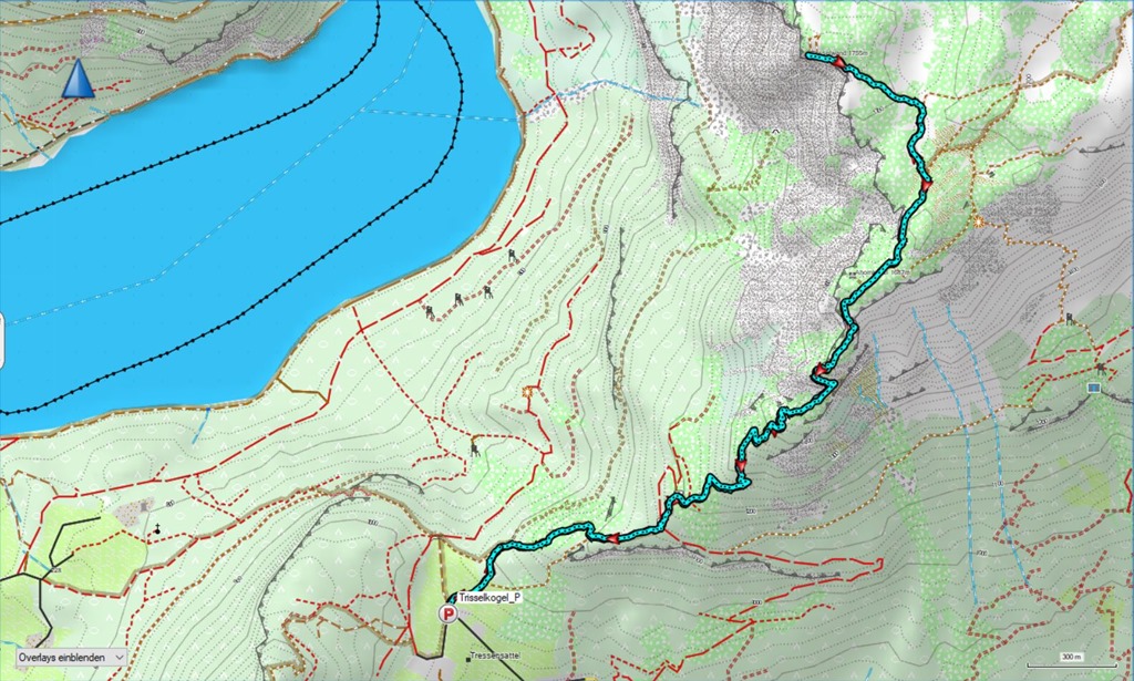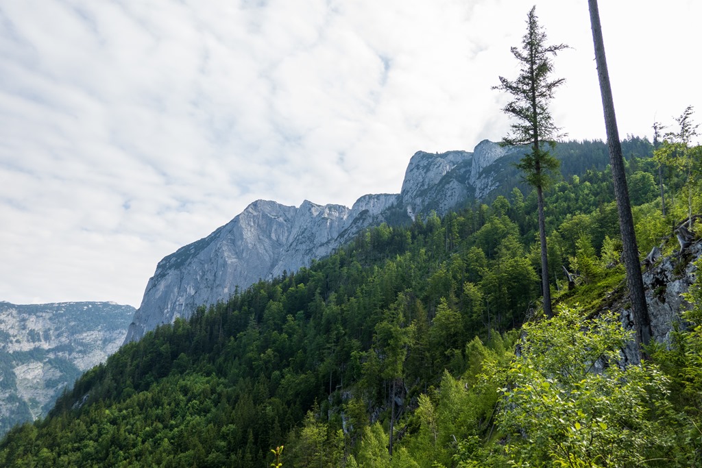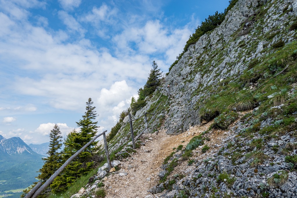 A Trisselwand, amit Trissenkogelnek is neveznek, a Totes Gebirge hegység egy szegletét határolja. Mögötte nagy kiterjedésű felföld húzódik meg, mely méltán vetekszik a Dachstein platójával is. Utam, első kétharmada-háromnegyede folyamatos meredek kaptatás erre az említett platóra. Az ösvény egy gerincen lavíroz, keresve a legalkalmasabb vonalat a feljutáshoz, és tehát nem direkt a falon tör át, hanem valahogy, valamiként inkább „hátulról” ostromolja (már amennyiben az Ausseer See tükre felől tekintünk a falra).