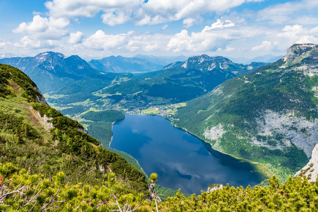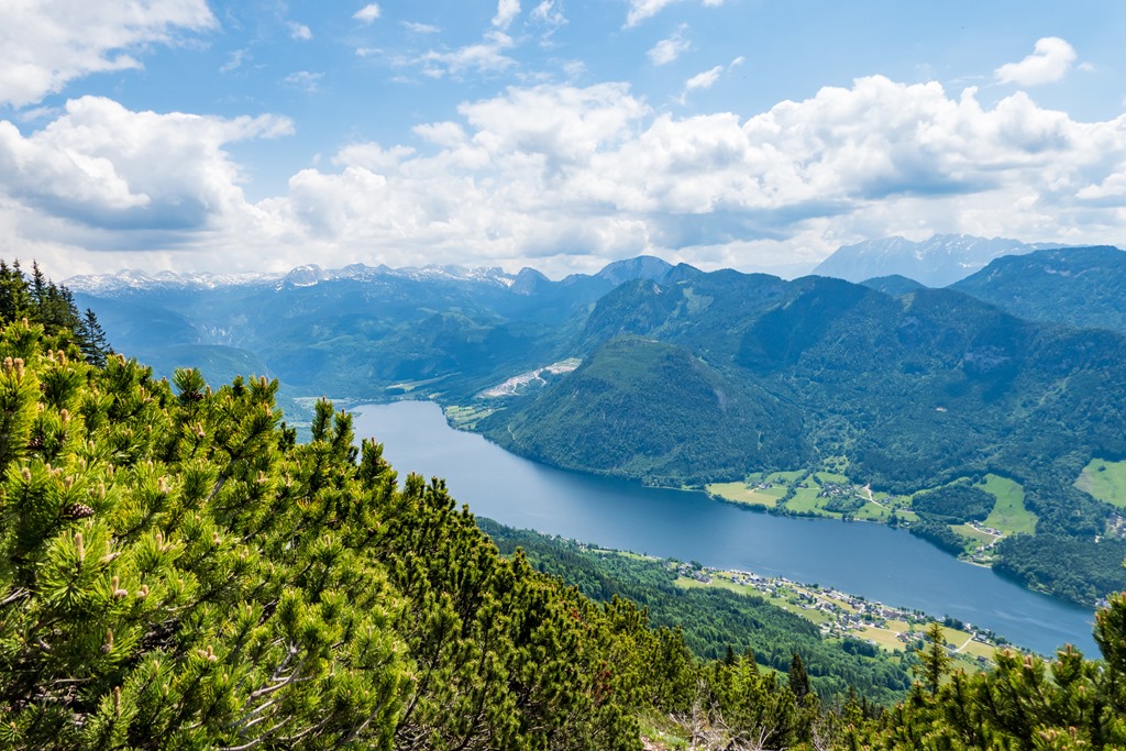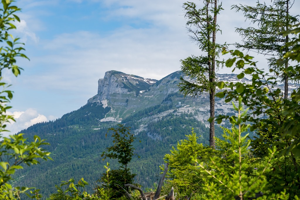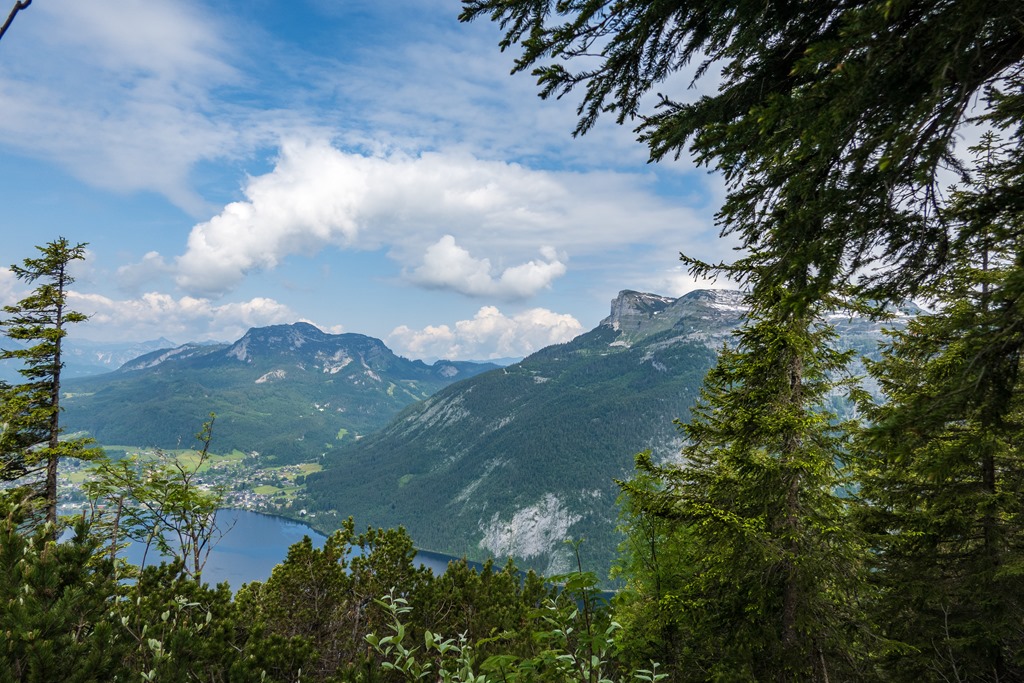 A tótól jobbra a Sandling, balra a Hoher Sarstein hegyvonulata (két majdani cél)