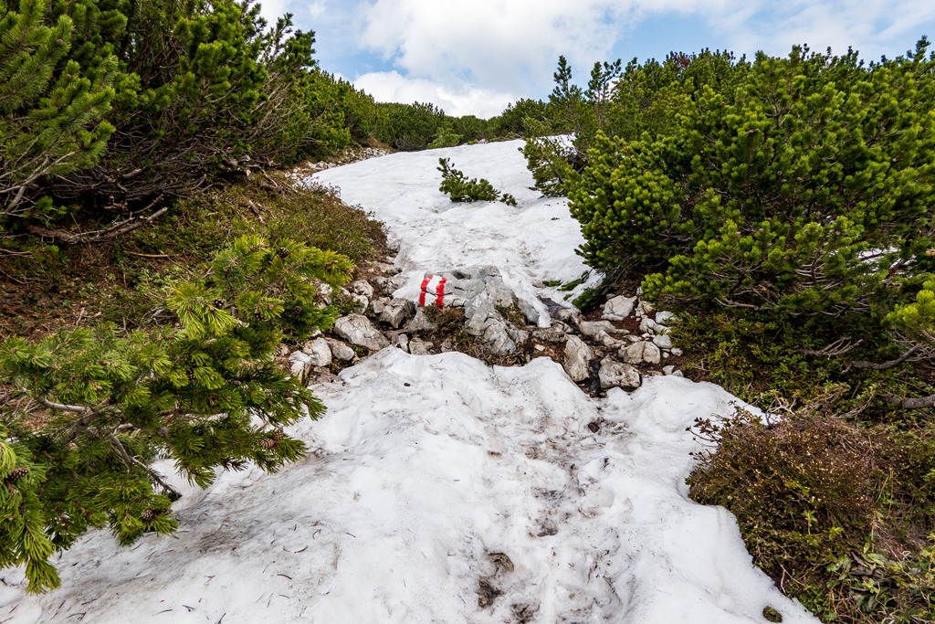 Lefelé ugyanazon az úton szállok alá. A menet nem nehéz, de fokozott figyelmet követel, különösen a platót elhagyó részek. Közben meg is születik a következő alkalomra kiszemelt célom, az átellenben köszöngető Sandling és a valamelyest nehezebb Hoher Sarstein 1975 m. De erre még tán egy esztendőt várni kell.