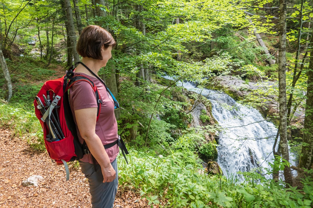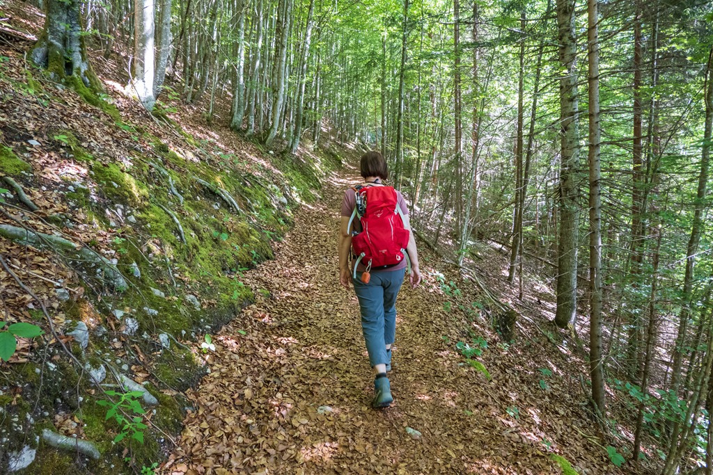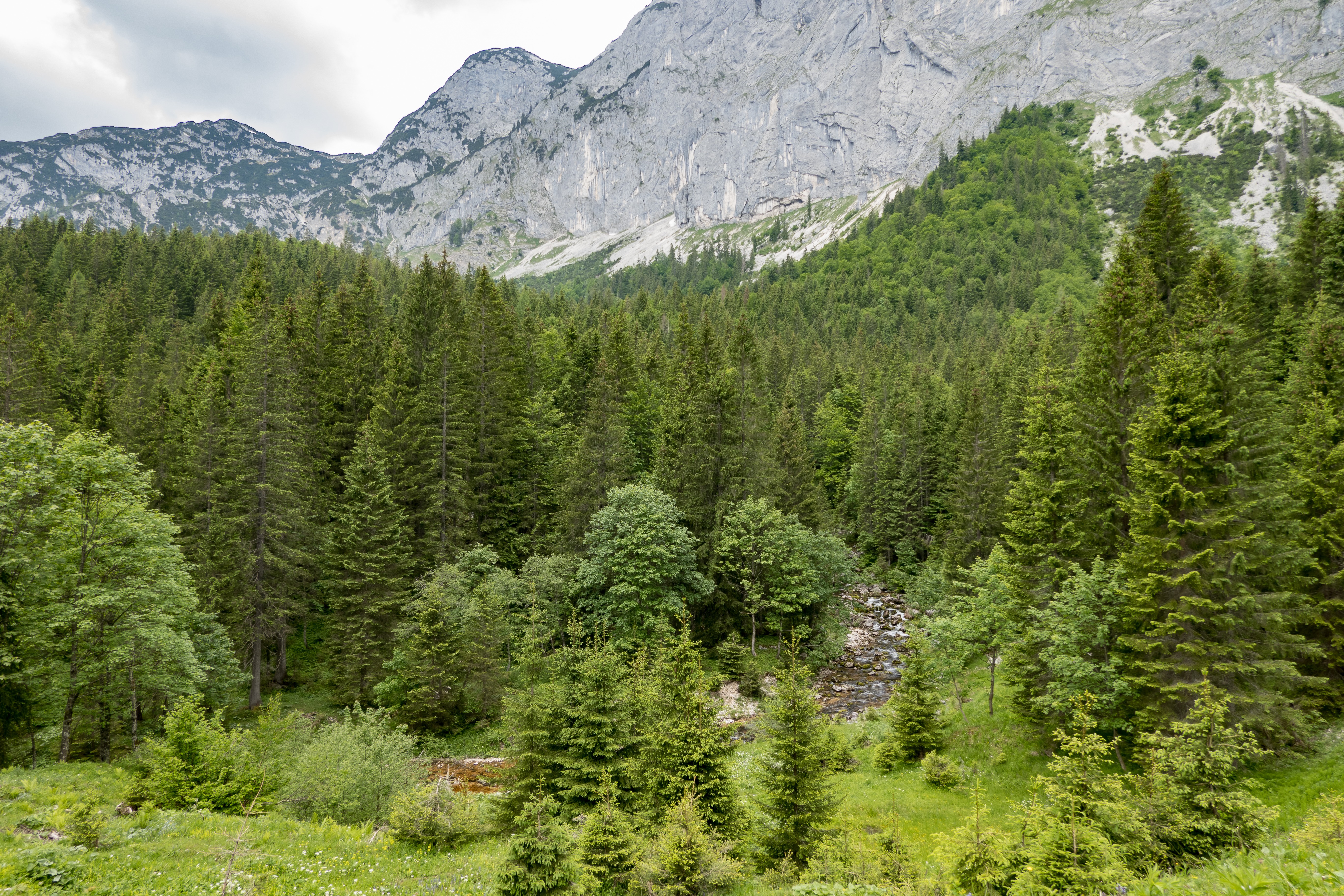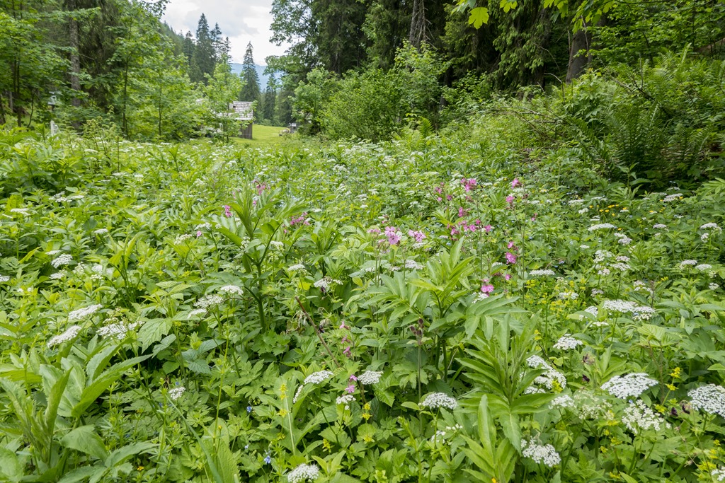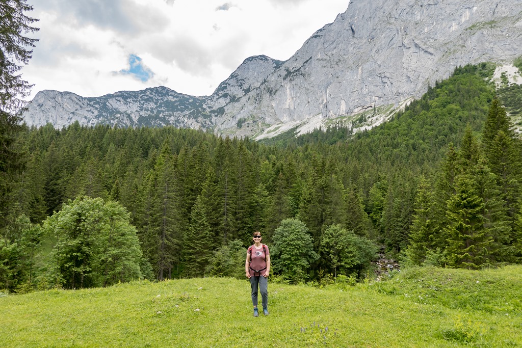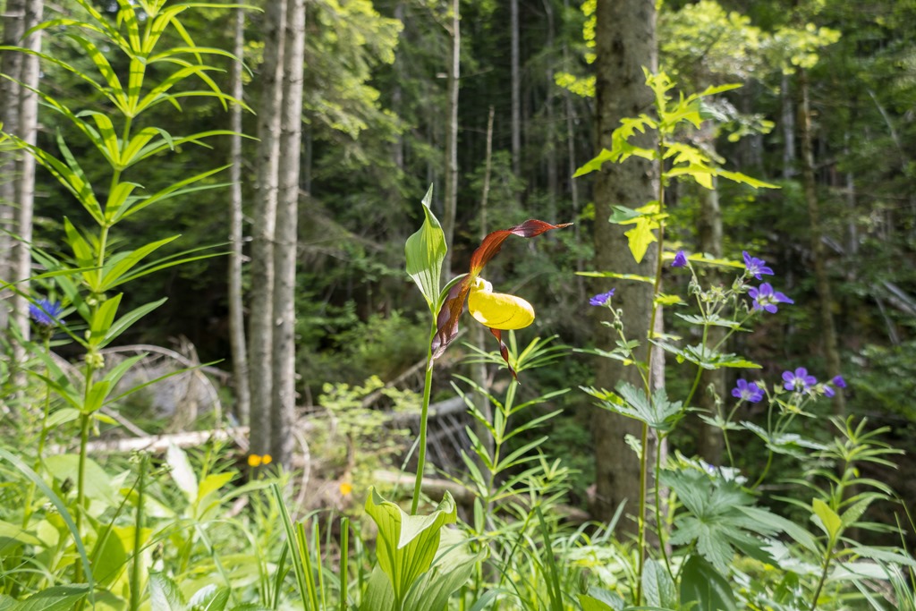 Megérkezéskor bódító édes virágillat fogad, a fű harsányzöldjébe számtalan alpesi virág vegyül. Hallgatjuk a madarak csivitelését is csodáljuk az Almot körbe ölelő sziklavilágot. A túra nem nehéz, de üdítő. Elvileg egy körutat is lehetne tenni a Gößler Schwaiber felé, de visszafelé is előnybe részesítjük a hangosan zubogó patak menti utat, mely különleges flórával tarkított. Még eddig nem nagyon találkoztam az orchidea-félékhez tartozó boldogasszony papucsával, most viszont tömegével fedezzük fel a telephelyeiket.