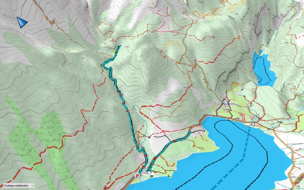 A fenyvesekkel körbeölelt Alm egy szűk völgykatlanba van beszorulva. Mindössze néhány fakunyhóból áll. Teheneket egyelőre nem látni, és nem tudni hogy lesznek-e. Ha igen, akkor is nem nagy számban, mivel a legelő nem túl nagy. Északról és nyugatról a Totes Gebirge meredek, áthatolhatatlan falai határolják, míg dél és kelet felől e hegység szerényebb domborulatai szabnak határt. A katlanba a Zimitzbach mentén, délnyugati irányból lehet bejutni, illetve a túloldalon északkelet felé vágtak a hegybe egy erdészeti utat.