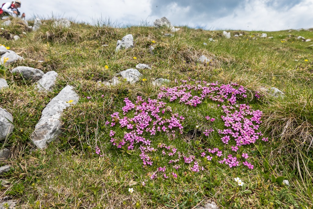 Az út később elhagyja az árok alját és a Hochgang lejtőin keresi az utat számtalan szerpentinben. A Stadelwandsattelban (nyereg) átmenetileg enyhülnek a kaptatók dőlésszögei, de hamarosan, a Schneeberg hátán újra bekeményít a terep. Cirka 2:10 óra elteltével érkezünk első pihenőkéjükre, a Mesemezőre (Märchenwiese). Itt elfogyasztjuk csoda-italainkat, ki-ki a maga repertoárjából, hogy legyen erőnk a még bizony jócskán felfelé kunkorodó ösvények legyűréséhez.