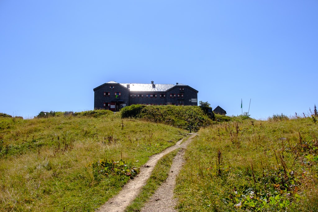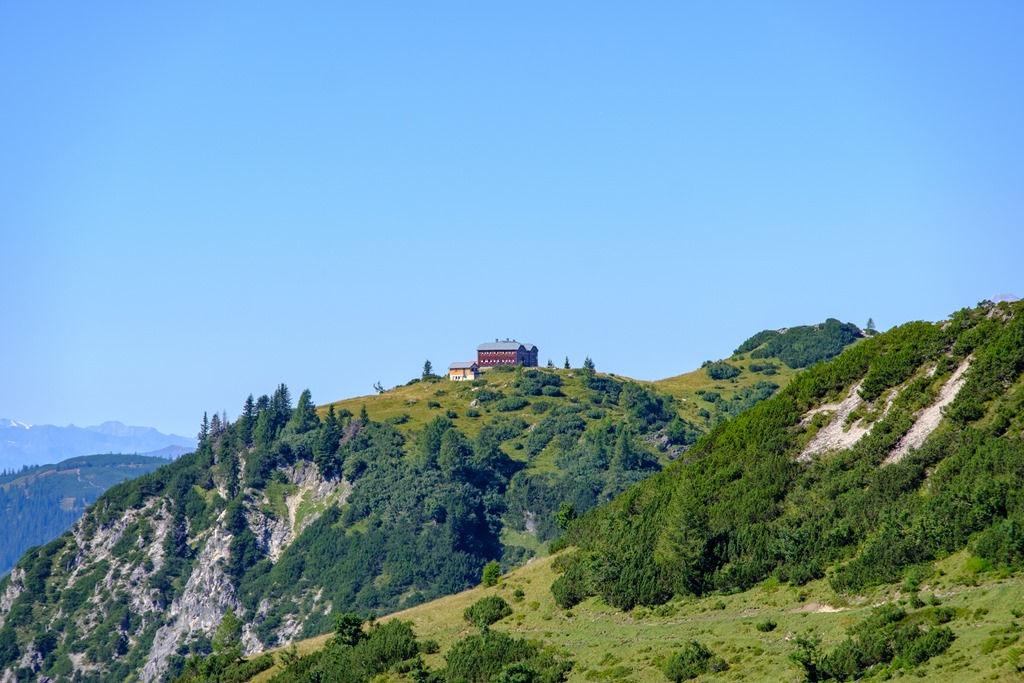A Hopfpürglhütte a Linzersteigről nézve