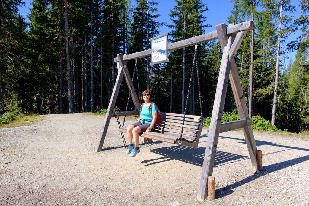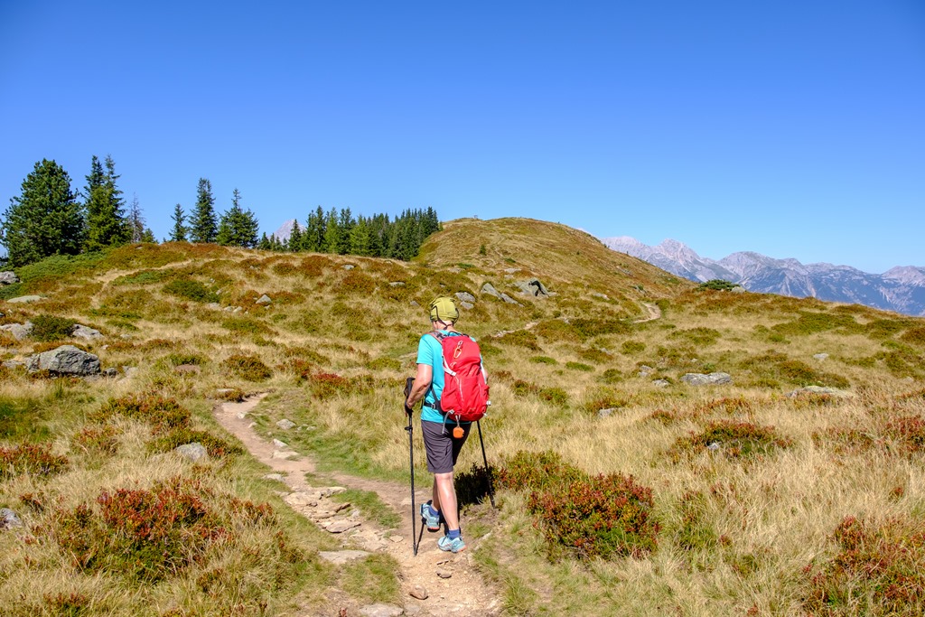 A dolgok hátulütője, hogy szép-szép leérni a célt, de visszafelé ugyanazokat a magaslatokat kell még legyűrni, mint amelyeken át idáig érkeztünk. Leereszkedés jön tehát vissza a Latterfußsattelba, majd onnan forró napsütéses kaptatás fel a Rossfeldre, majd újra le a Hüttecksattelba és végezetül ismételten fel a Hochwurzenre.