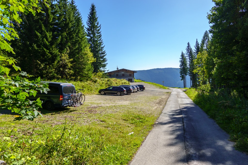 Még elmasírozom a másik Sulzenalm, a Kralehenhütte mellett, mely kicsivel a Wallehenalm alatt fekszik (érdekes hangzású nevek). A visszafelé vezető út nagyrésze jóillatú fenyveserdőn át vezet. A Wallehenalmtól számítva, cirka 1:15 óra alatt érkezem vissza a Rettensteinhütte parkolójába (lenti kép).