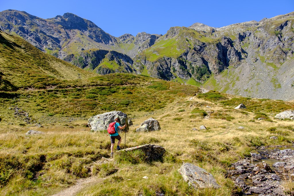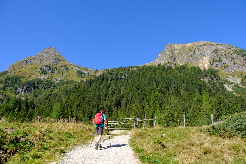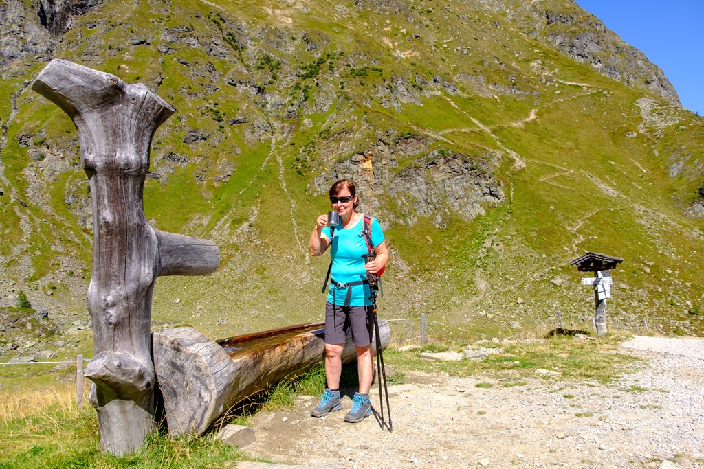 Lehuppanunk egy napernyő alá a Hütte teraszán és elköltjük az ilyenkor szokásos egyszerű étkünket. Most szerencsére kétszer is ellenőriztem, hogy hozom-e a bugyellárisomat. A cirka egyórás pihenőnk után, lassan-lassan, komótosan, a vidék csodáit élvezve, a széles kocsiúton csörgedezünk alá. Felettébb ajánlott, rút meglepetések nélküli kirándulás, kicsiknek és nagyoknak egyaránt.