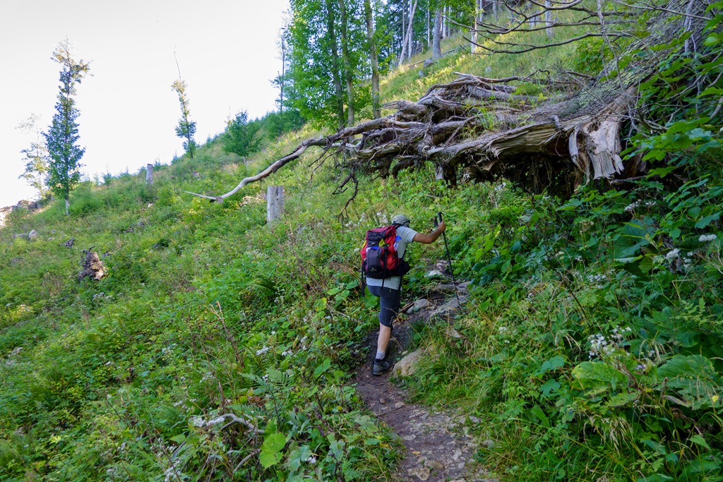 Az út kacifántjai ezzel még nem érnek véget, mert a nyeregből is egy inkább igényesebb harántoló, keskeny ösvény húzódik hosszasan, mint a rétestészta, anélkül, hogy kimutatná azon szándékát, hogy ereszkedjen. Tudniillik inkább hajlamos újra felfelé vinni, semmint a völgy felé. Na, de ennek is egyszer vége szakad és folyamatosan enyhülnek az út nehézségei, egészen vissza a kiindulópontig.