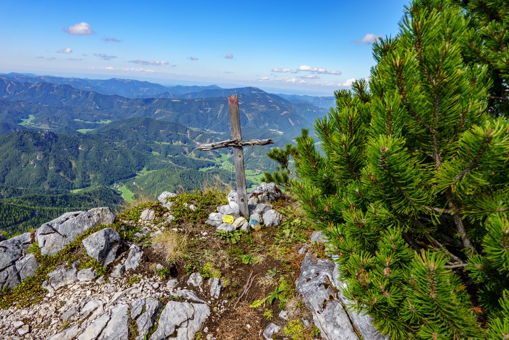 Ez itt egy újdonsült kis fakereszt, még nem látta, a Schwarzauer Gippel legmagasabb pontját lenne hivatott jelezni