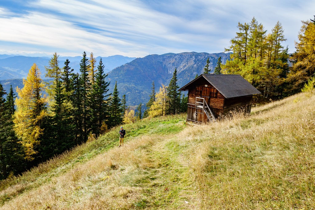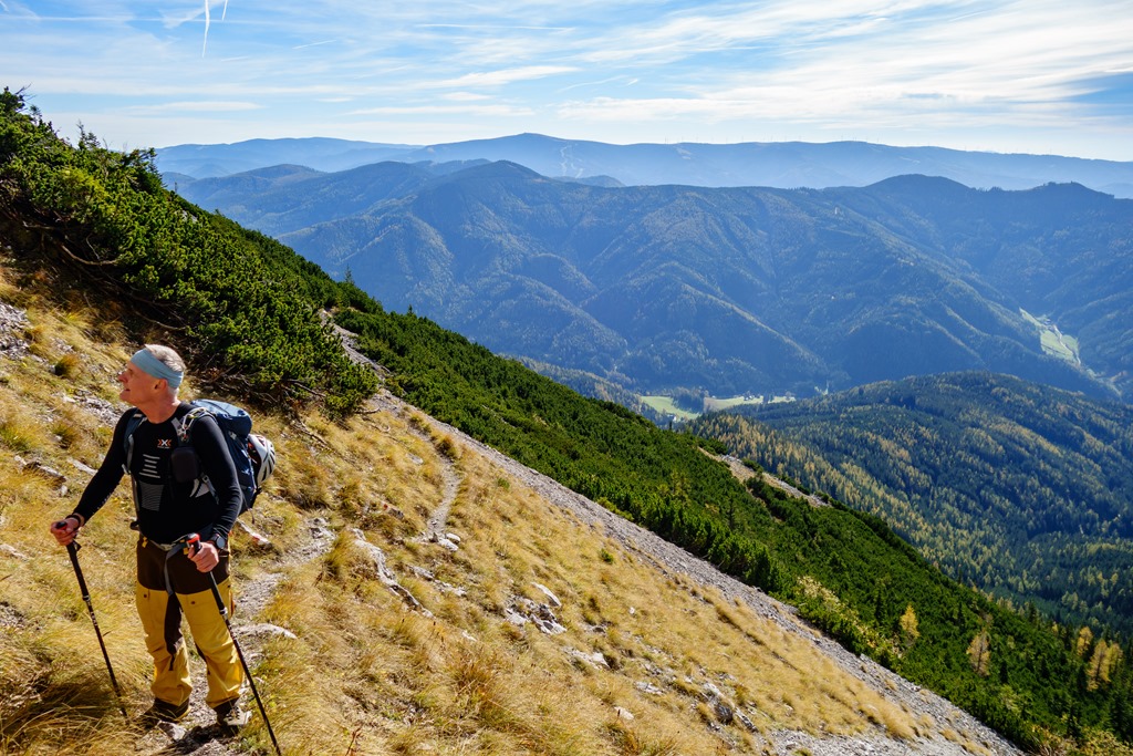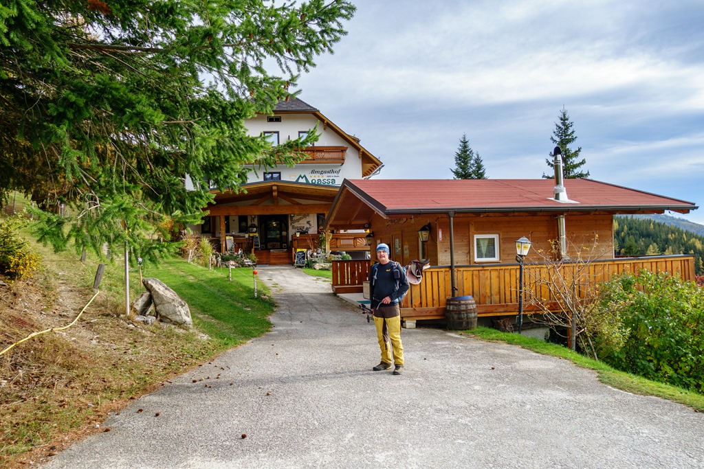 Az Almgasthaus szerencsére nyitva és jól látogatott, nincs tehát akadálya egy elnyújtott kései déli pihenőnknek. Nem is sietünk már, mivel a visszafelé vezető út kifejezetten gyengéd, semmi kihívás sincs már benne, hacsak nem vesszük figyelembe azt az otromba plusz 100 méter ellenszint-emelkedést, amit még Preiner Gscheidig mégiscsak, teli gyomorral, valahogy le kell hogy küzdjünk.