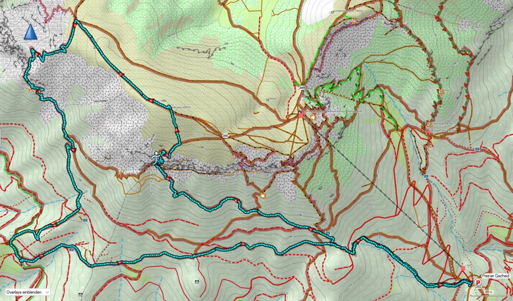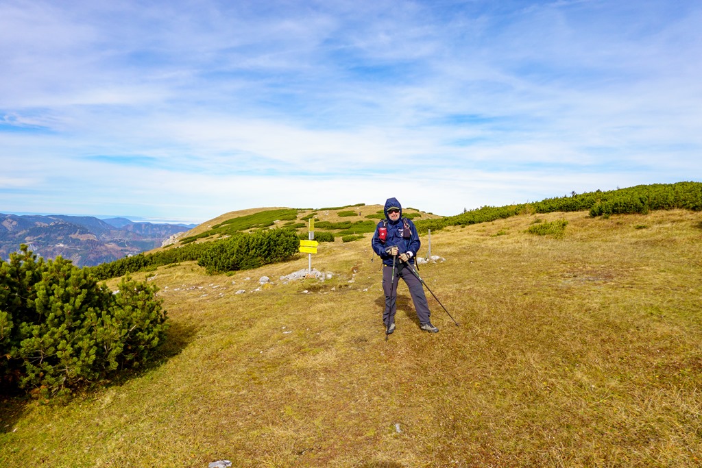 A Preiner Gscheid hágóról indulunk úgy 9:10 óra körül (új, téli idő szerint). Itt még elkel néhány plusz réteg öltözék, mert ugyancsak hűtöttek a kedélyek. Alig hagyjuk el azonban a huzatos hágót és veselkedünk neki a kaptatóknak, máris jobban érezzük magunkat és hamarosan meg kell válnunk ruházatunk felsőbb rétegéitől. Ezúttal is beigazolódni látszik a réteges öltözködésről szóló elv.
